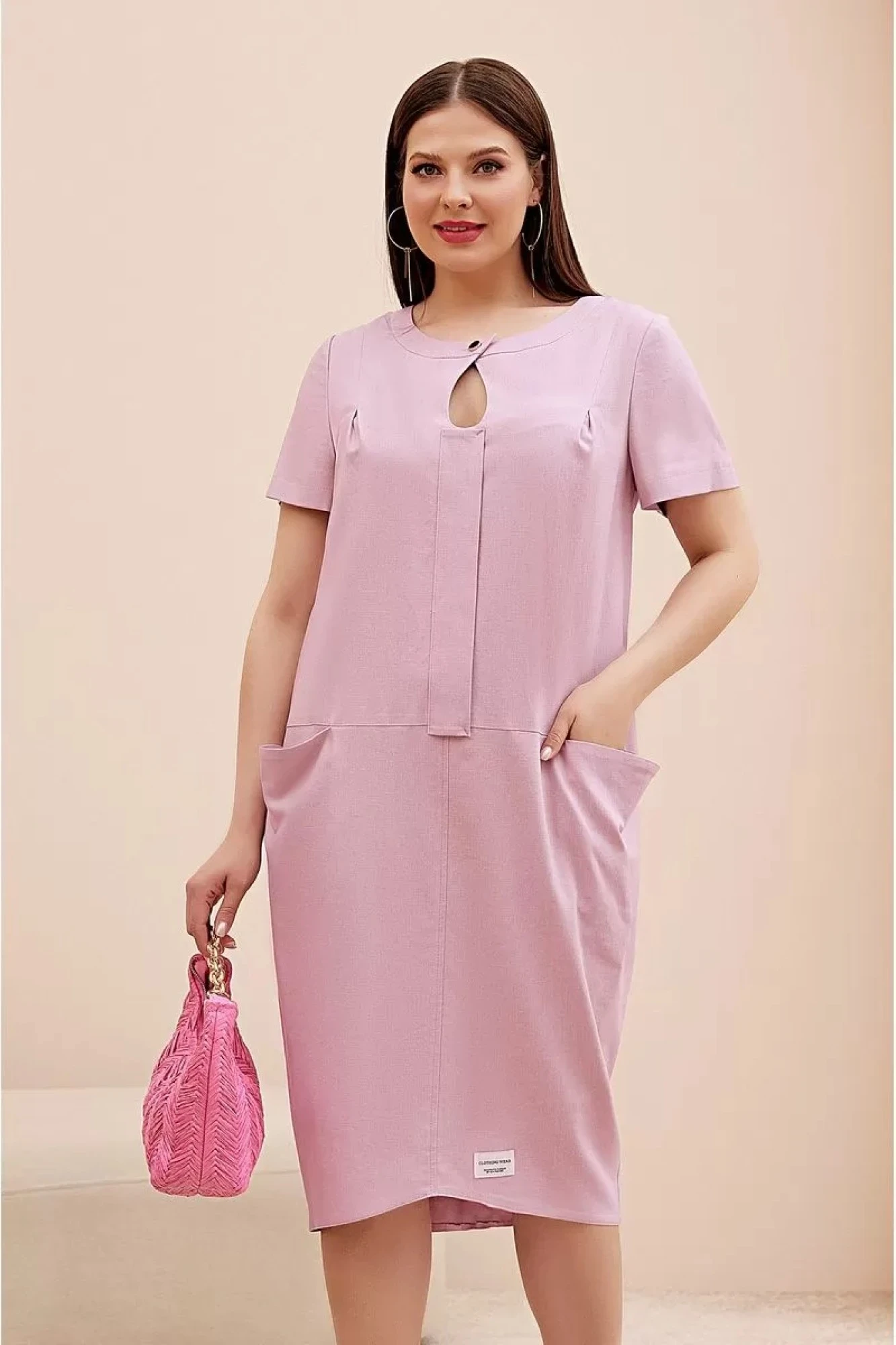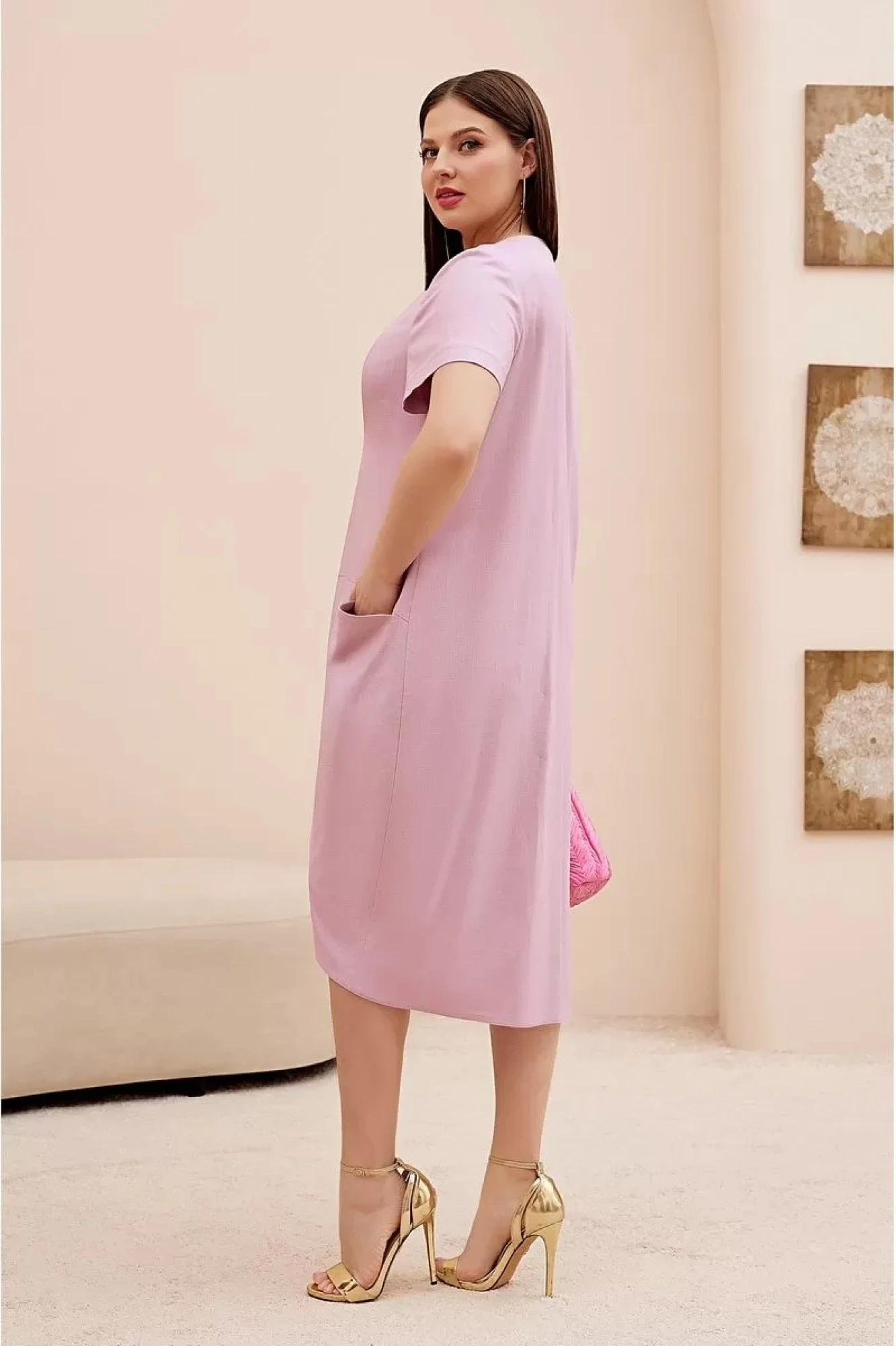 Платье с округлым вырезом ближе к лодке, вырез оформлен отрезной обтачкой с каплей и настрочной планкой, обтачка с застежкой на пуговицу. Перед отрезной ниже линии талии, лиф оформлен вертикальными застроченными вытачками от плеча, низ со средним швом и фигурной линией. Спинка удлиненная со средним швом и талиевыми вытачками, застежка на потайную молнию в среднем шве. Рукав втачной.