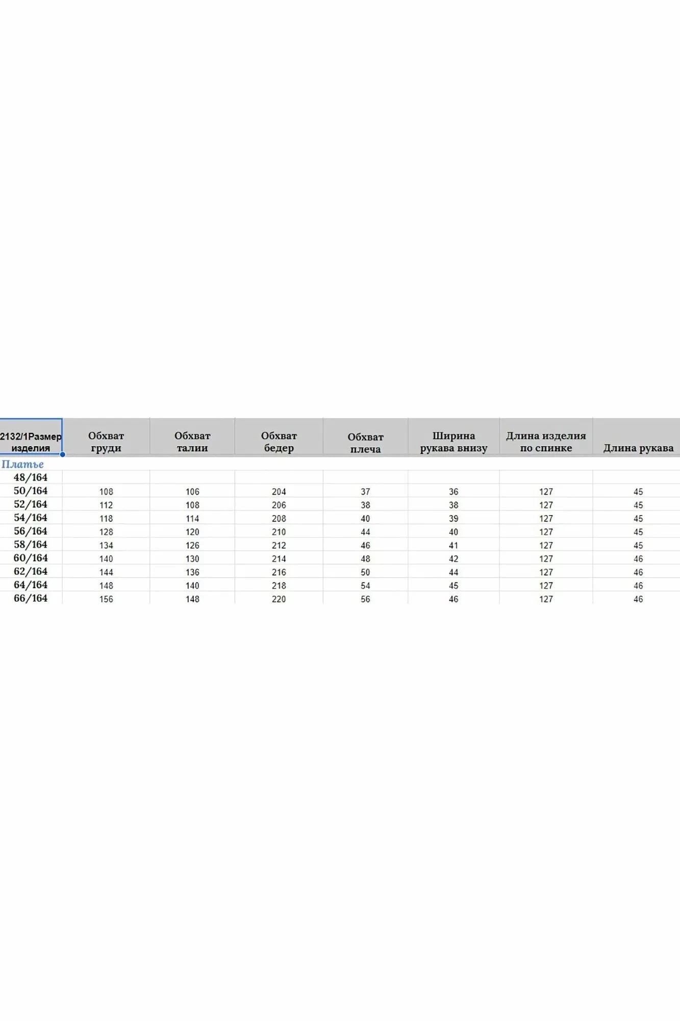 50,52,54,56,58,60,62,64, 66Длина рукава 45 см (+/-1 см). Длина по спинке 127 см (+/-1 см). Изделие подойдет на рост 170 см.