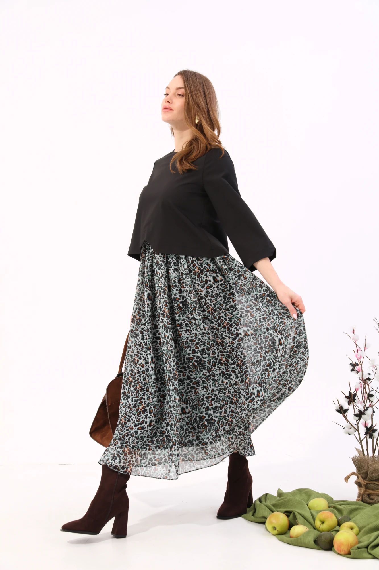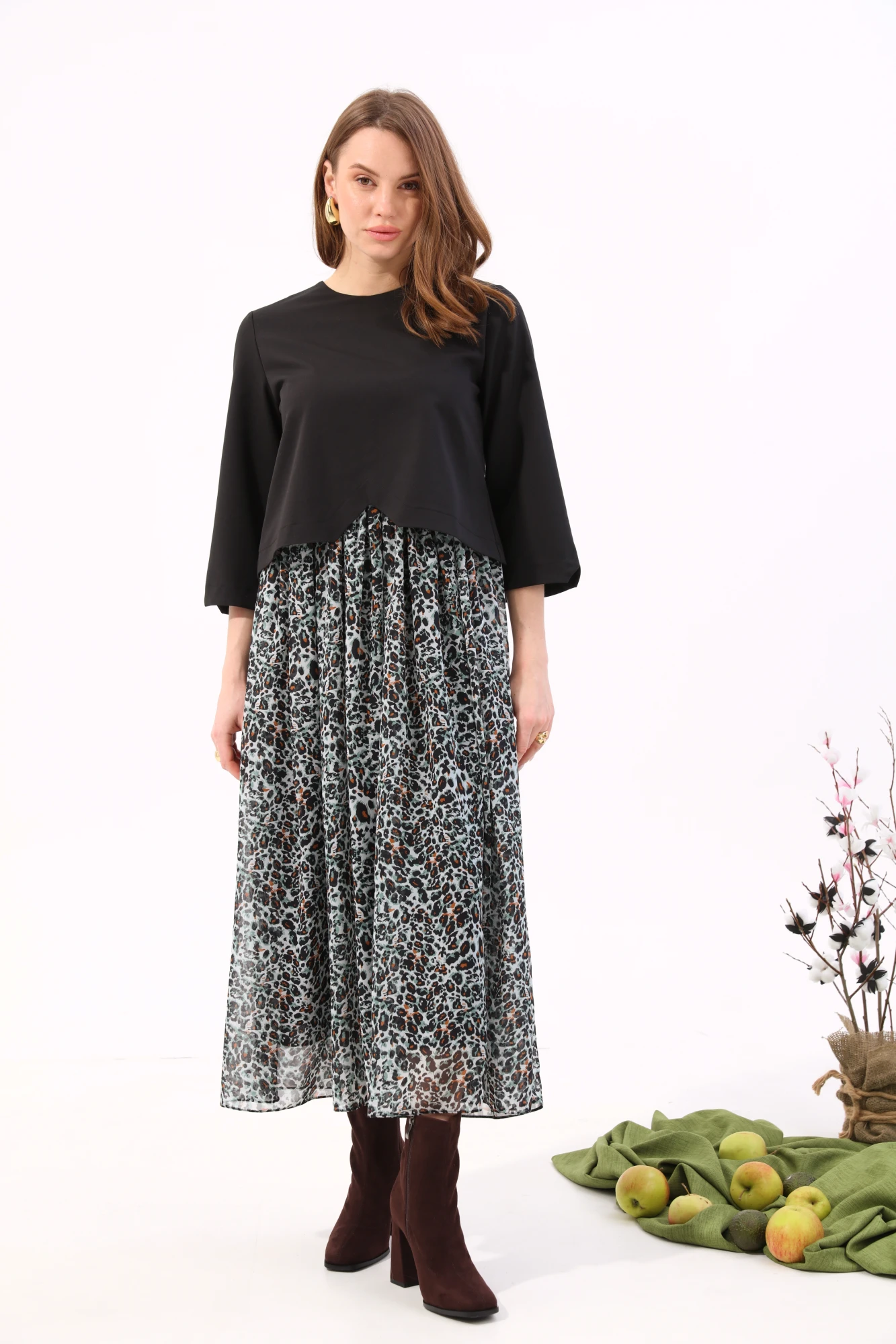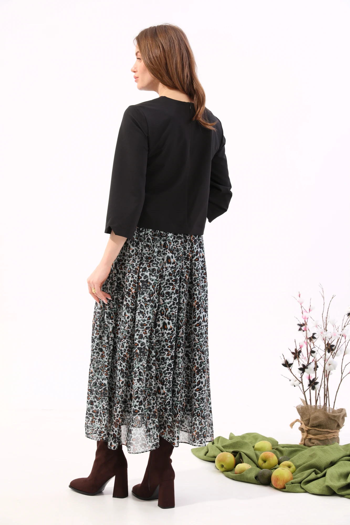 Платье NikVa 740-12 черный+ бирюзовый леопард
