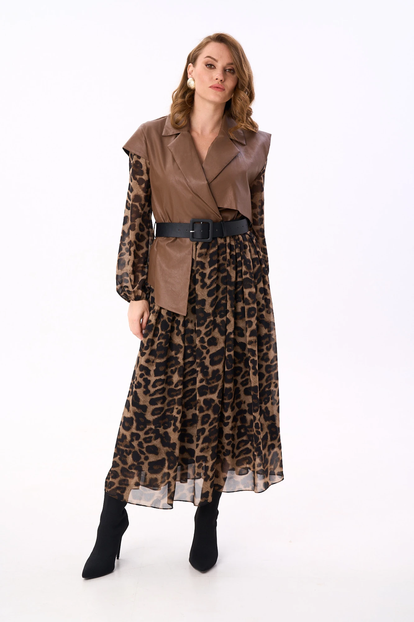 Платье NikVa 904-7 шоколад и шоколадный леопард