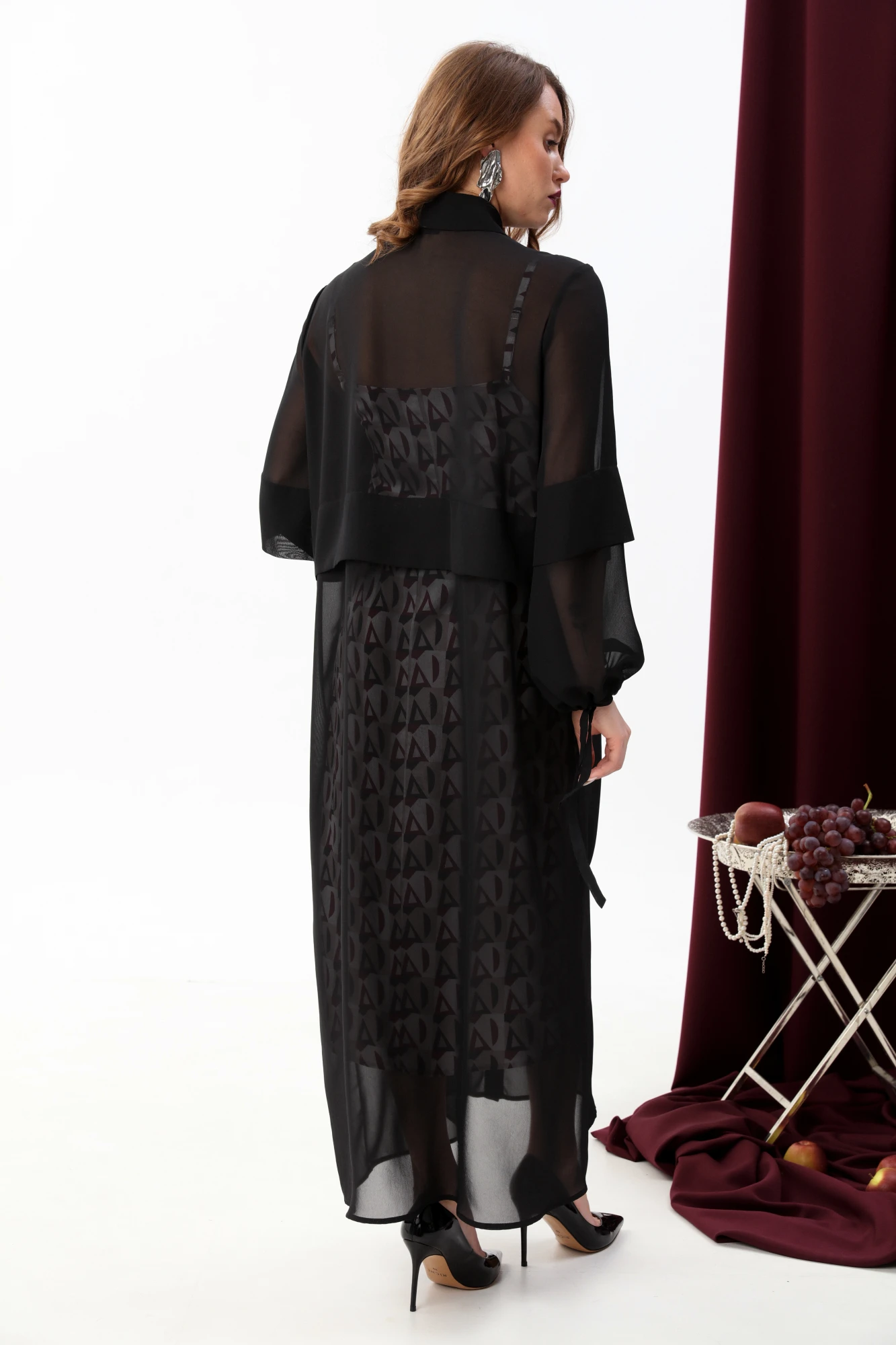 Платье NikVa 943-1 чёрный+бургунди ромбы
