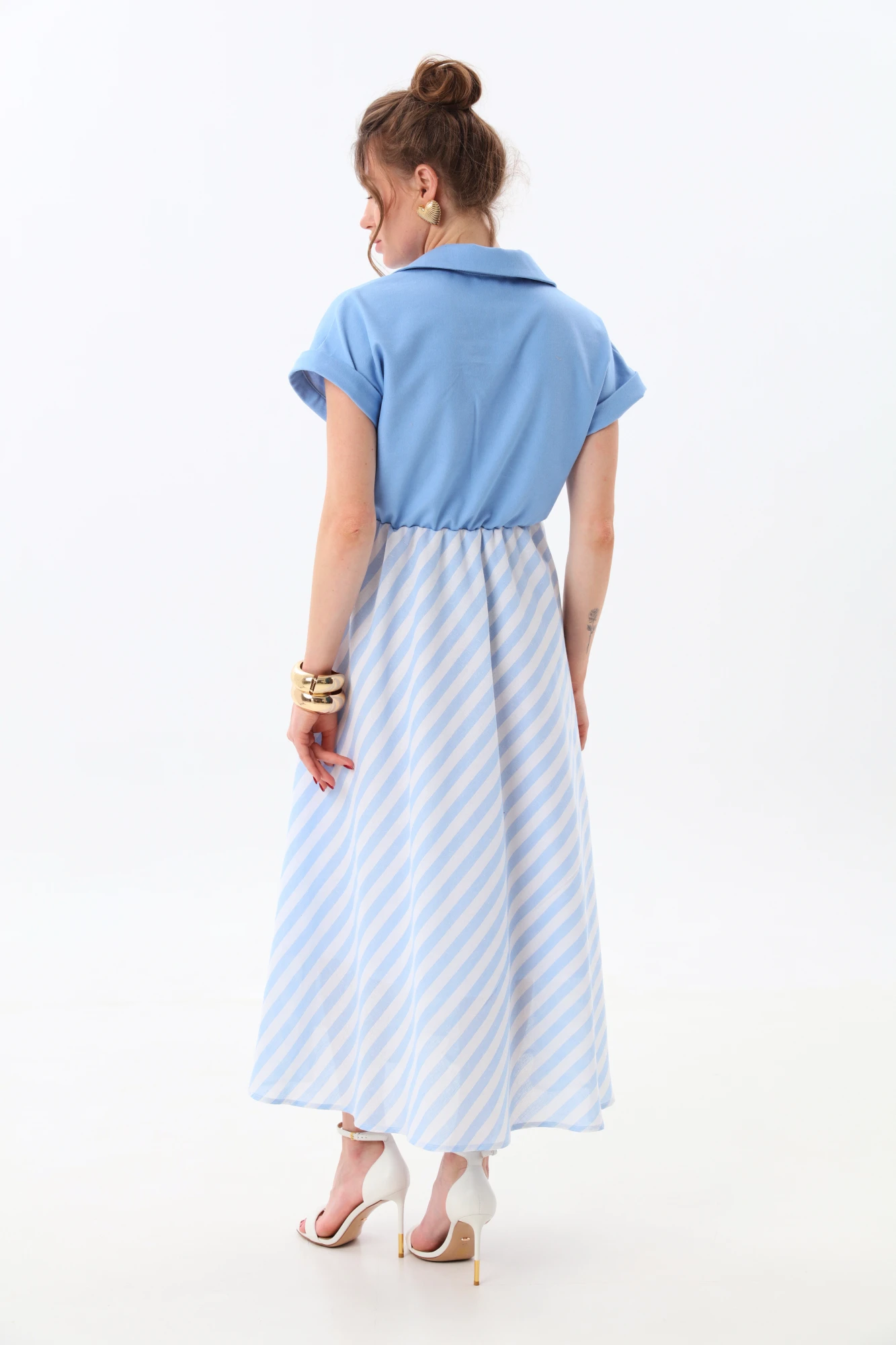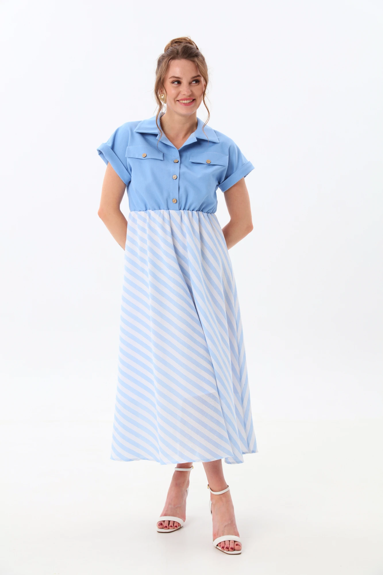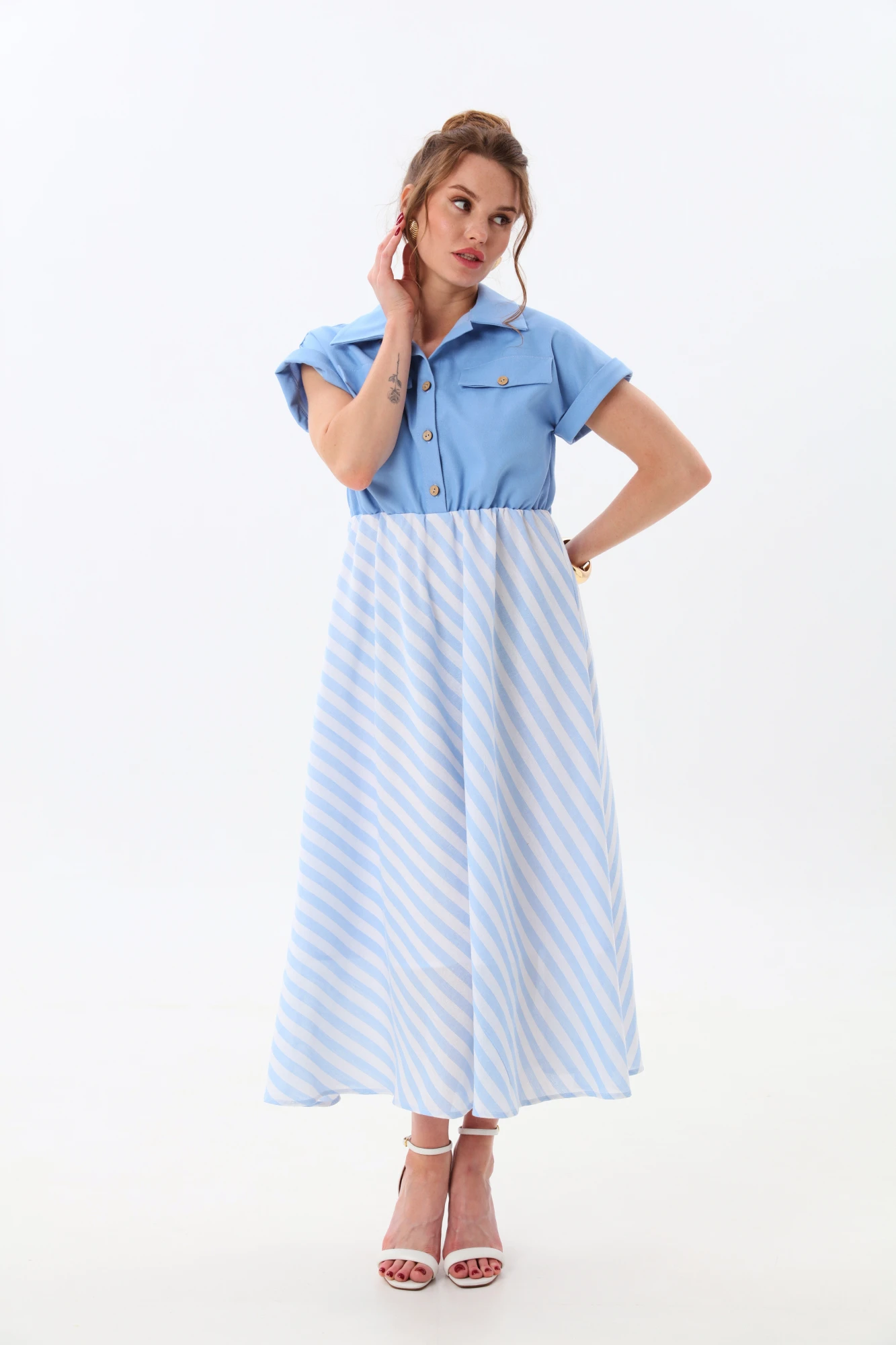 Платье NikVa 969-2 голубой+бело-голубая полоска
