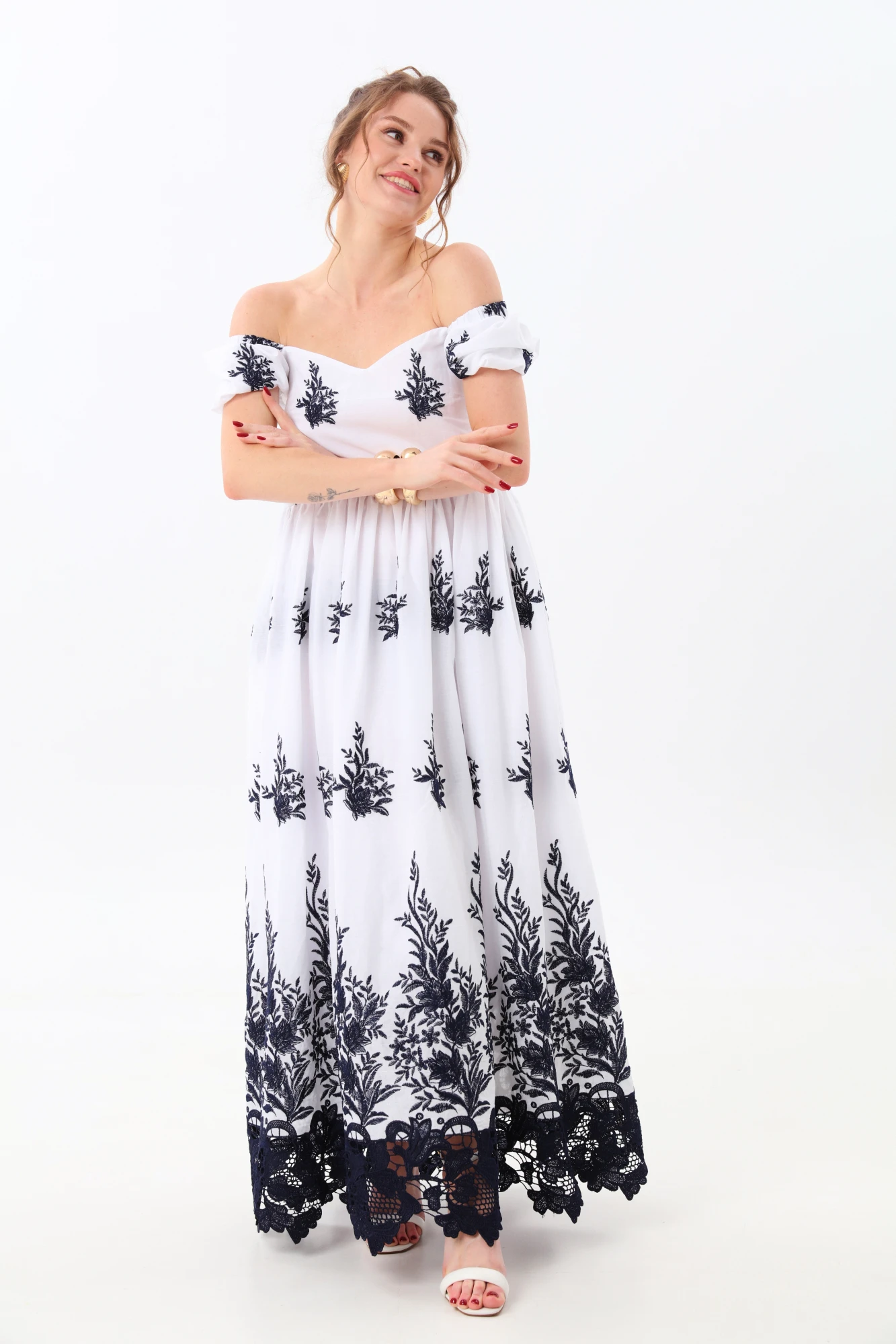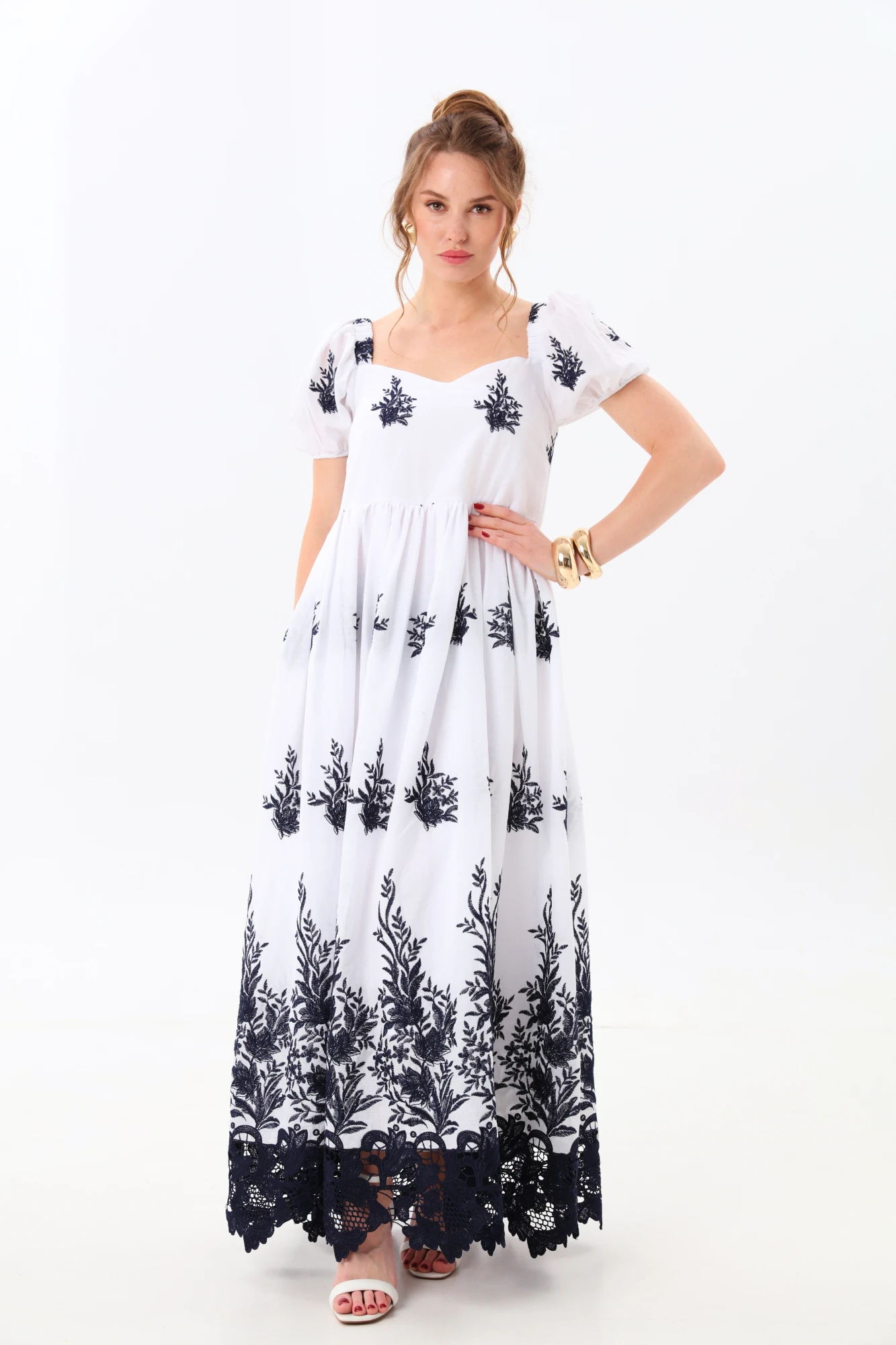 Платье NikVa 982-1 молоко_с_вышивкой_цвета_индиго