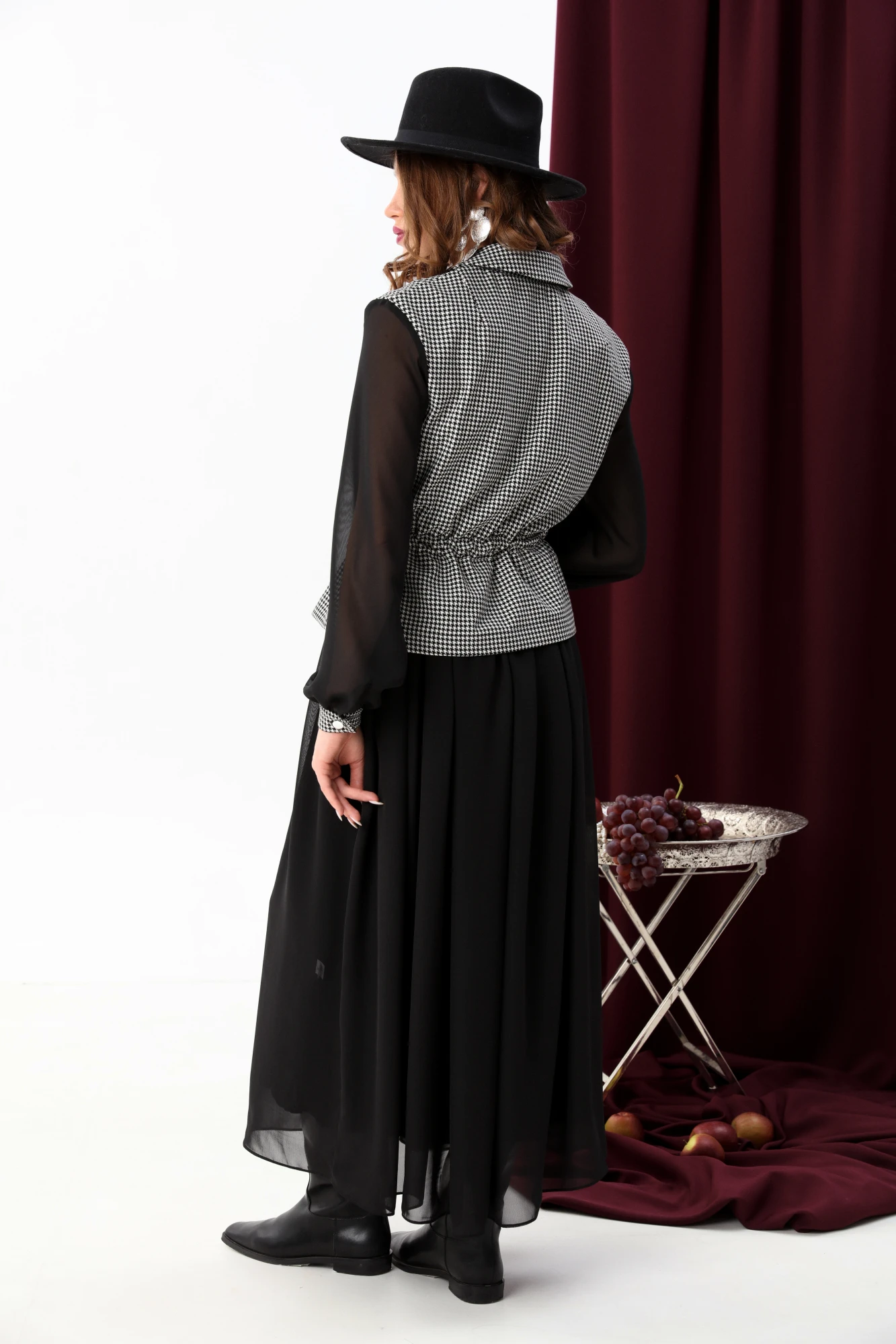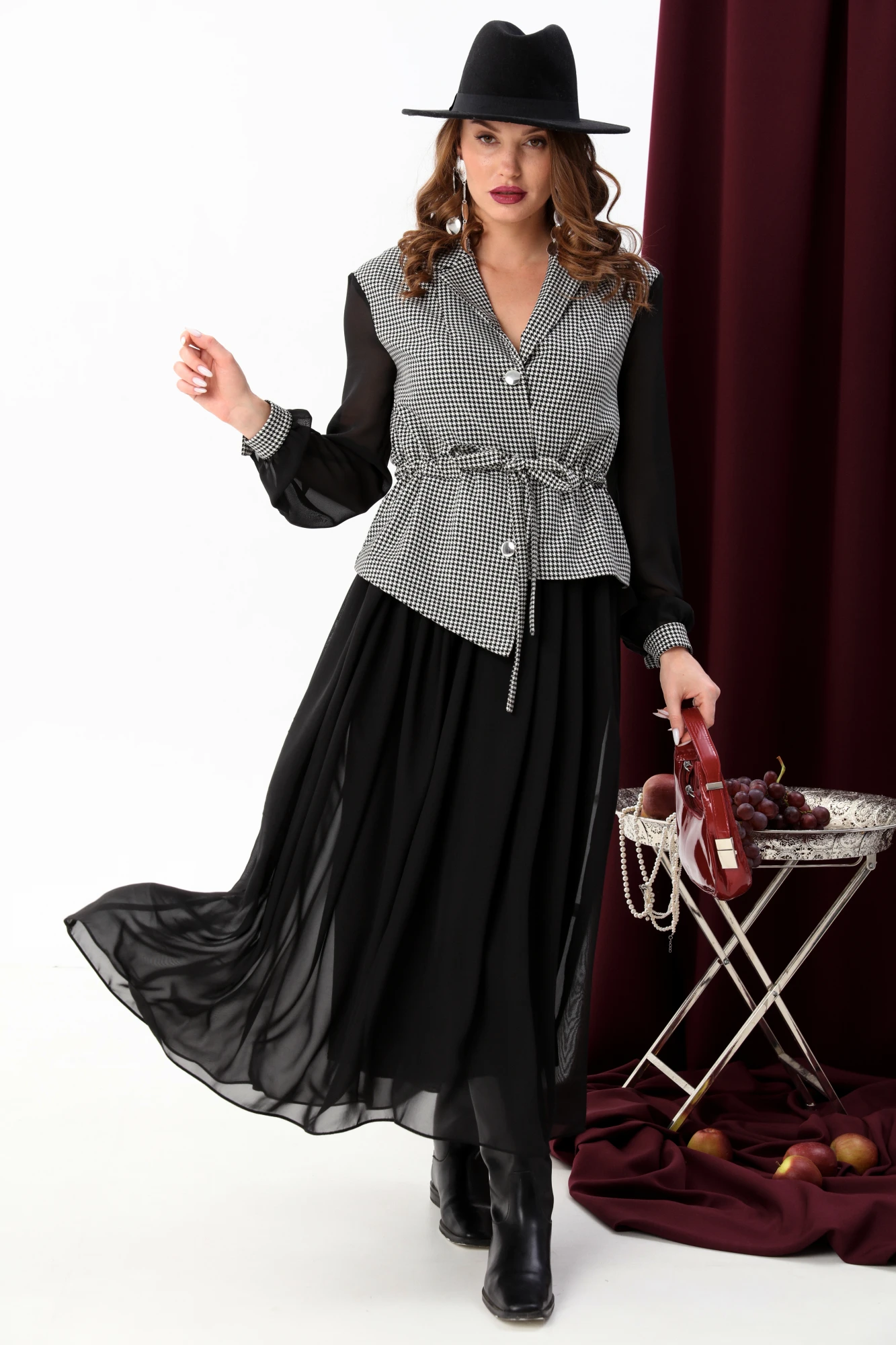Платье NikVa н900-5 чёрно-белая гус лапка+чёрный