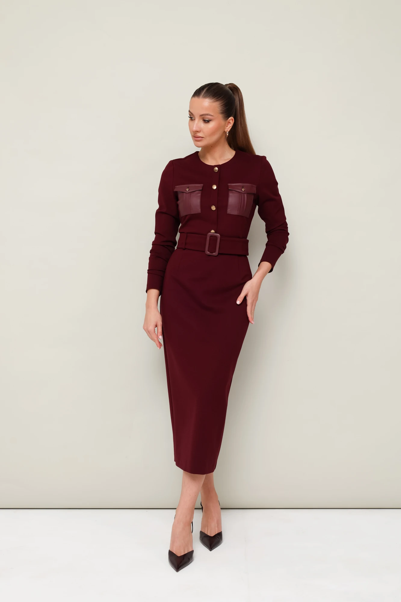 По поясу предусмотрены шлевки. В комплекте прилагается пояс из основной ткани с пряжкой."