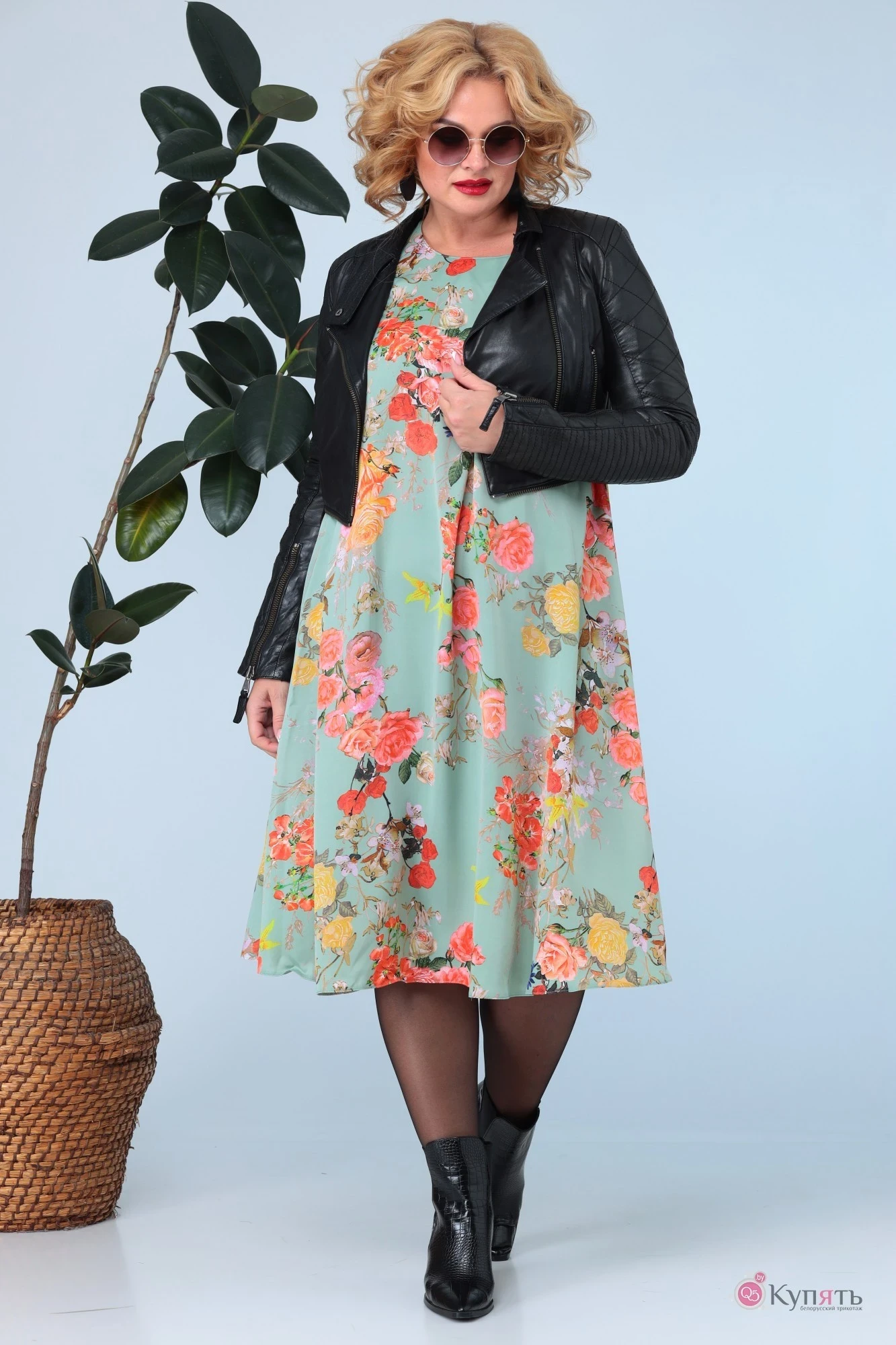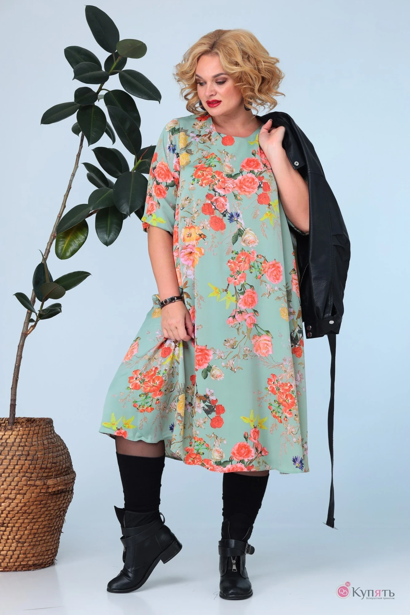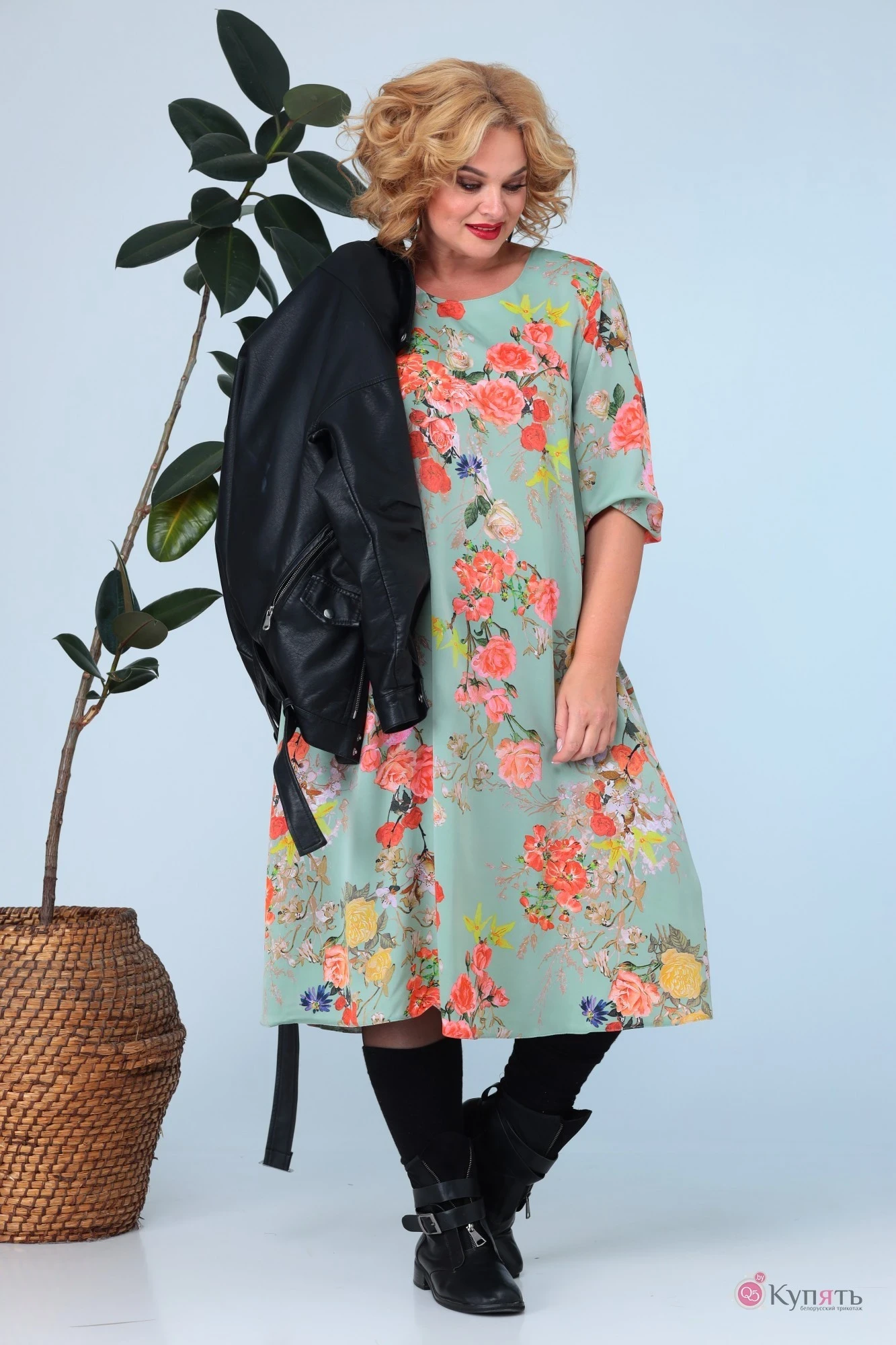 Платье женское из текстильной ткани, расширенное к низу. Изделие подойдет на любую фигуру. Перед цельный, спинка-сточная, горловина овальной формы. Рукава втачные, одношовные. Низ рукава на резинке. Длина рукава-3/4. Длина изделия-(50-54)-102 см.(56-60)-111 см.,длина рукава-(50-60)-45см.