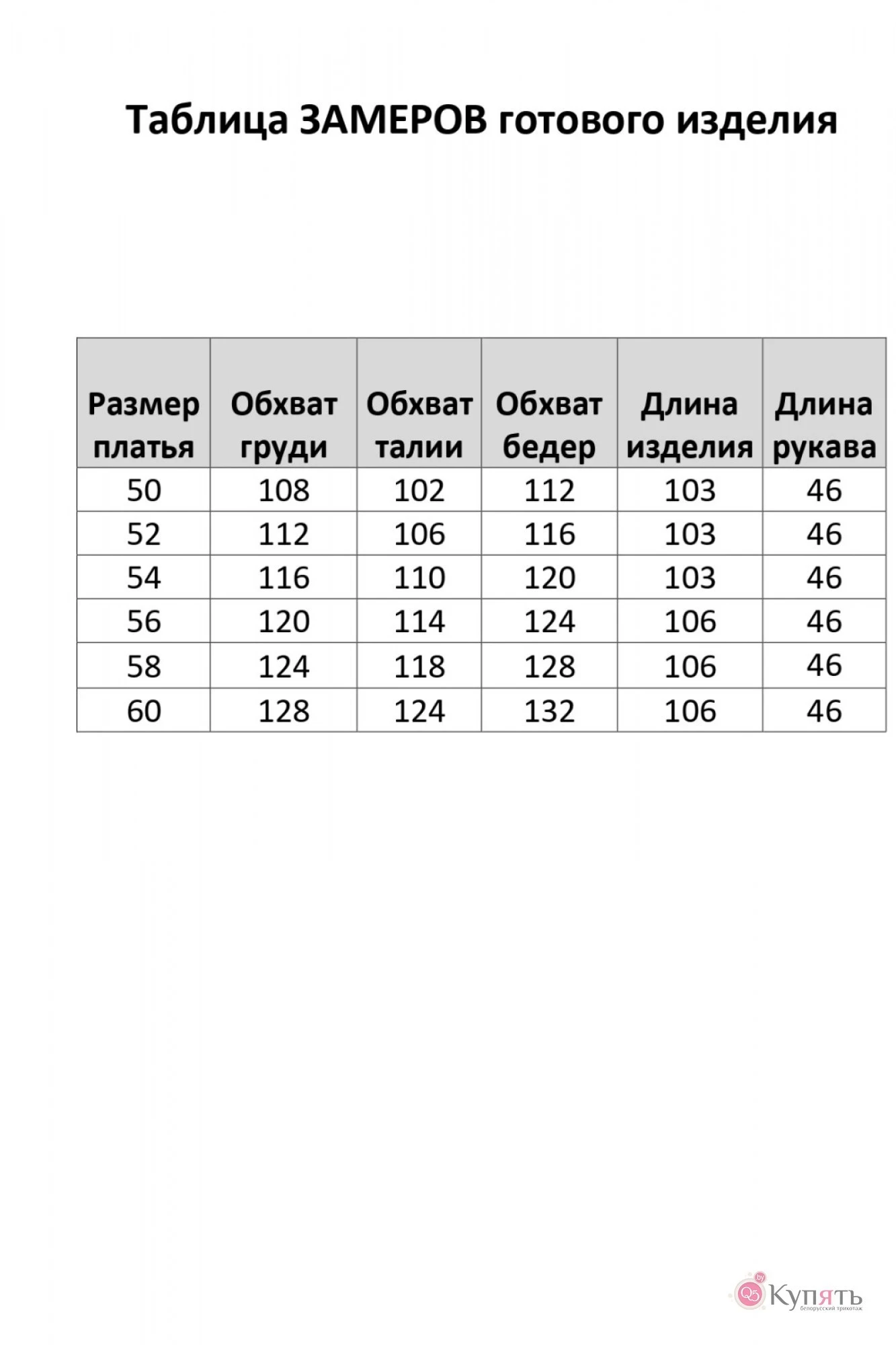 Таблица размеров