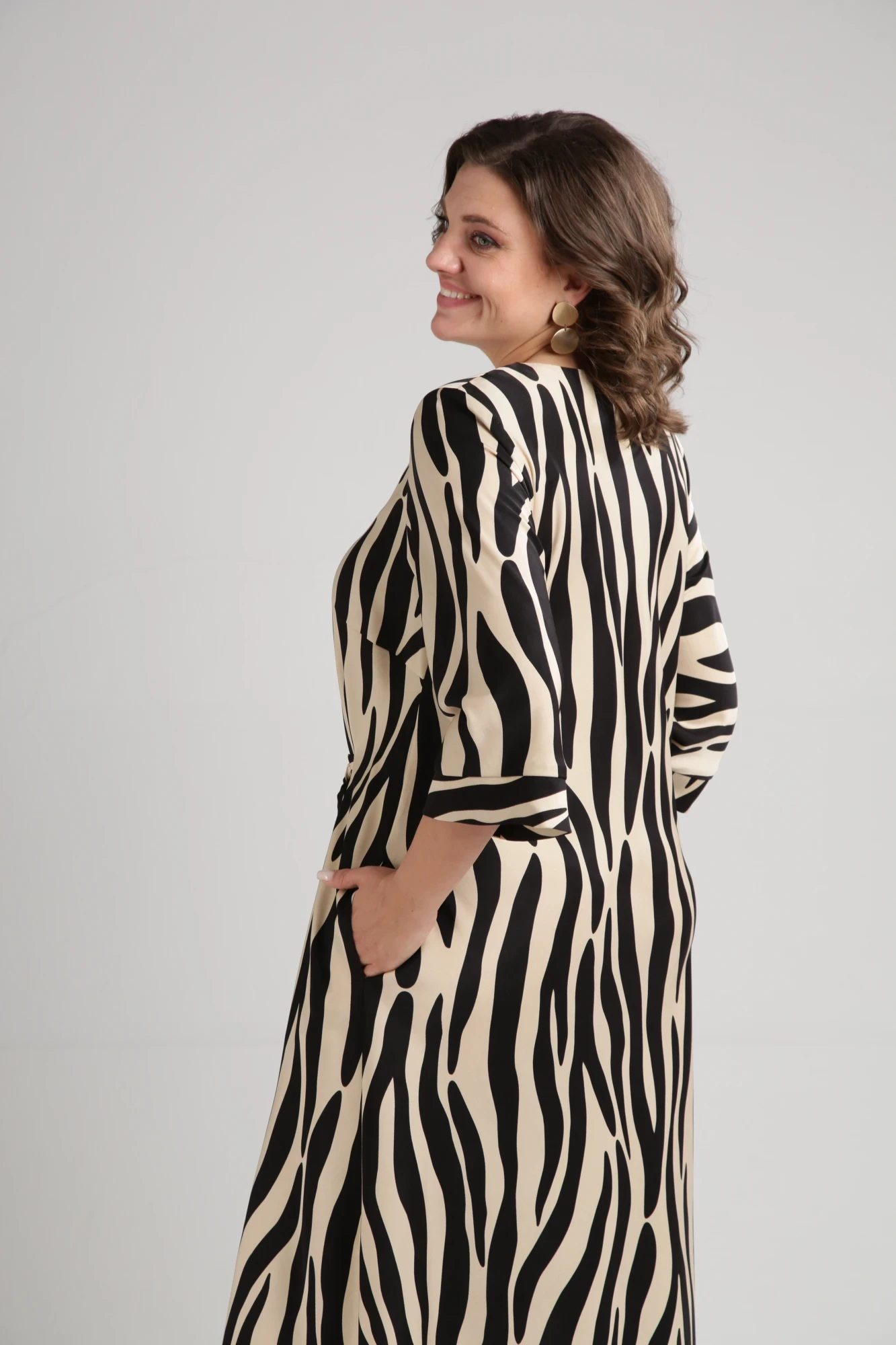 Лаконичное и стильное, оригинальное платье А-силуэта помогает владелице эффектно обыграть силуэт. Перед платья с нагрудными выточками и декоративным элементом по линии талии, который позволяет подчеркнуть силуэт и оставить при этом платье свободным. V-образный вырез подчеркивает красивую зону декольте. В боковых швах платья расположены карманы. Рукав одношовный втачной с притачной манжетой по низу.