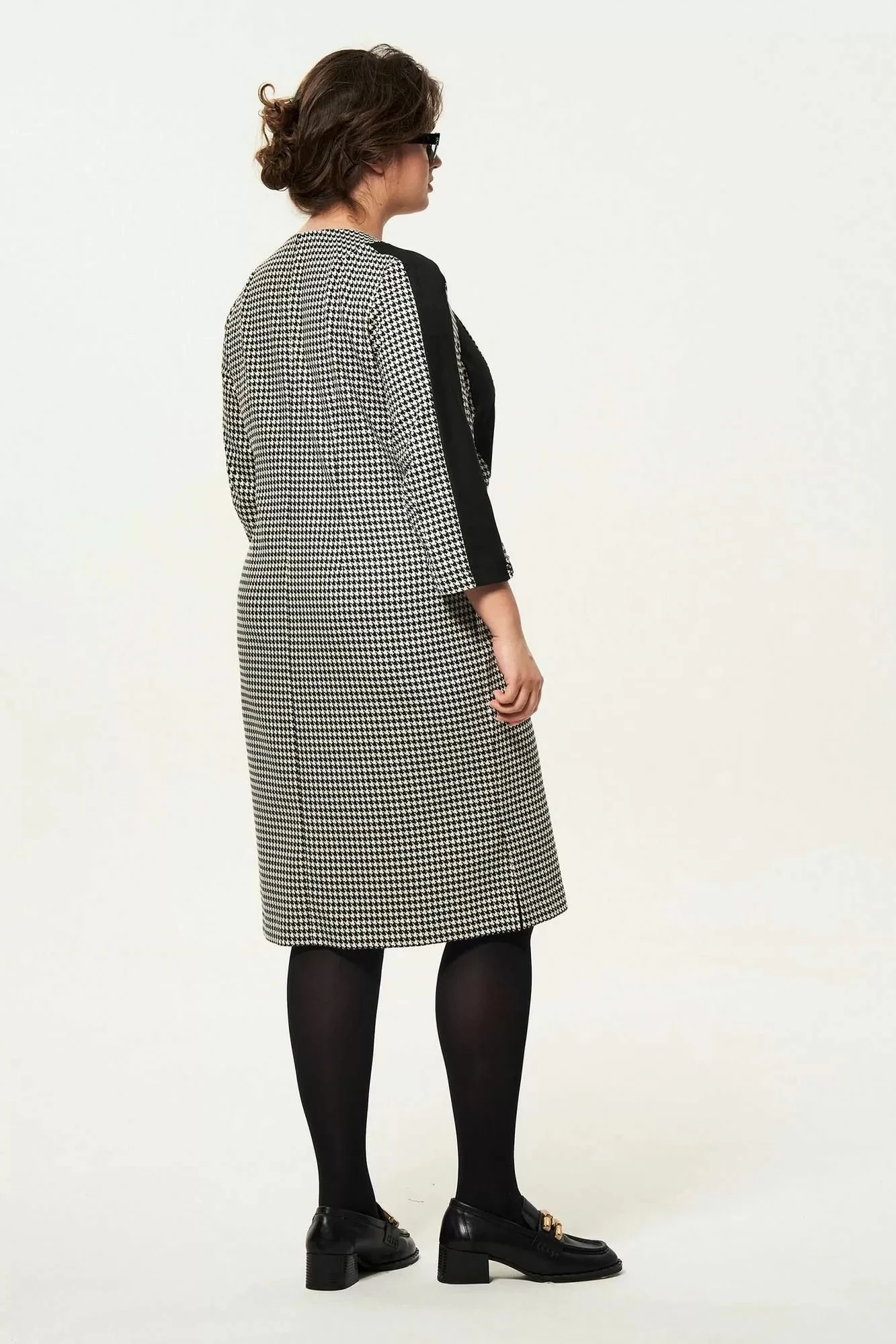 Рукава длиной 3/4, комбинированного покроя со вставками из чёрной ткани.