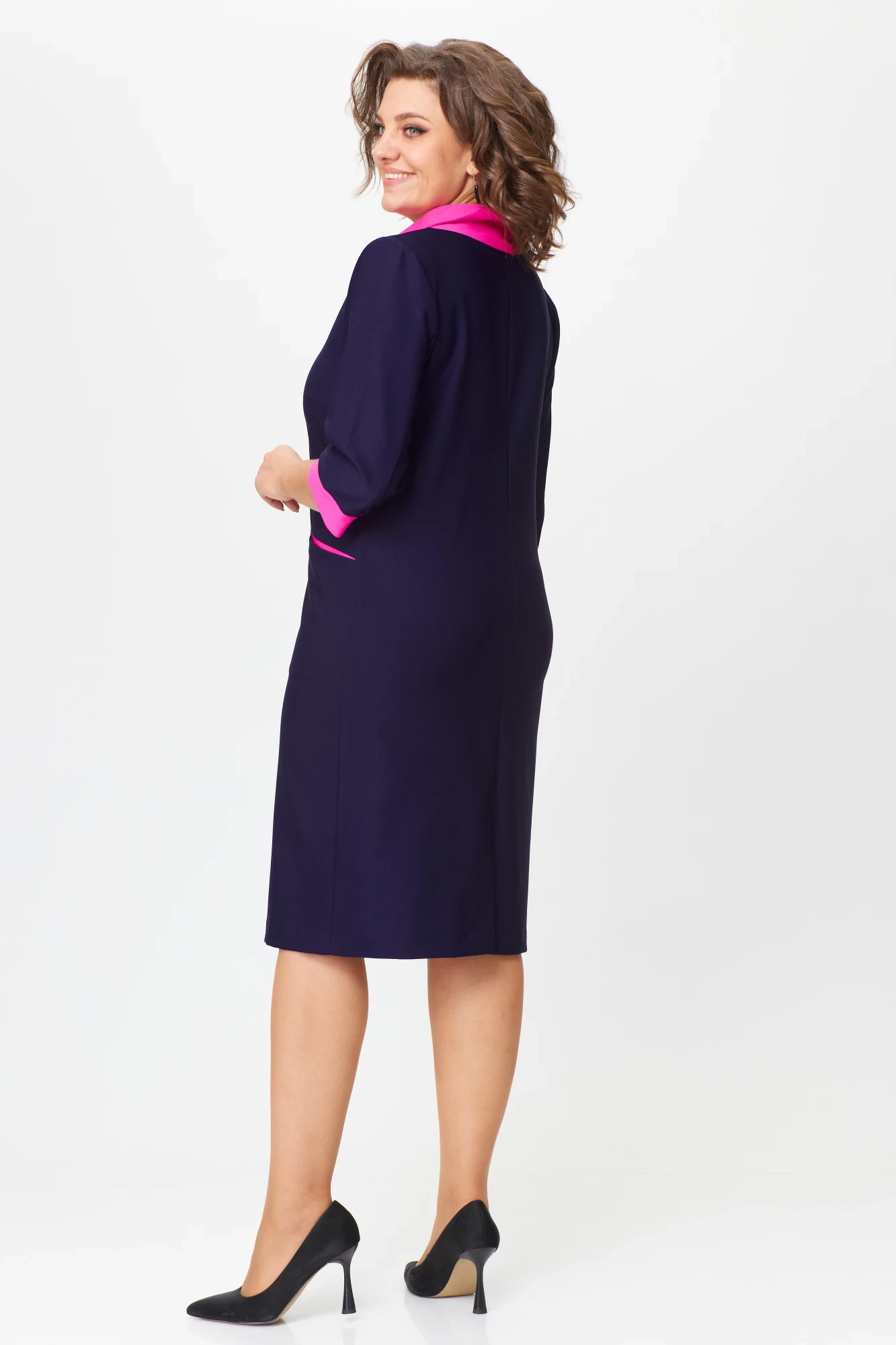 48,50,52Платье прямого силуэта из трикотажной ткани. По линии спинки центральный шов заканчивается шлицей. По полочке нагрудные вытачки и выполнены потайные карманы. Горловина и рукава обработаны контрастной яркой тканью. Воротник хомут. Деликатная стирка при 30 градусах!