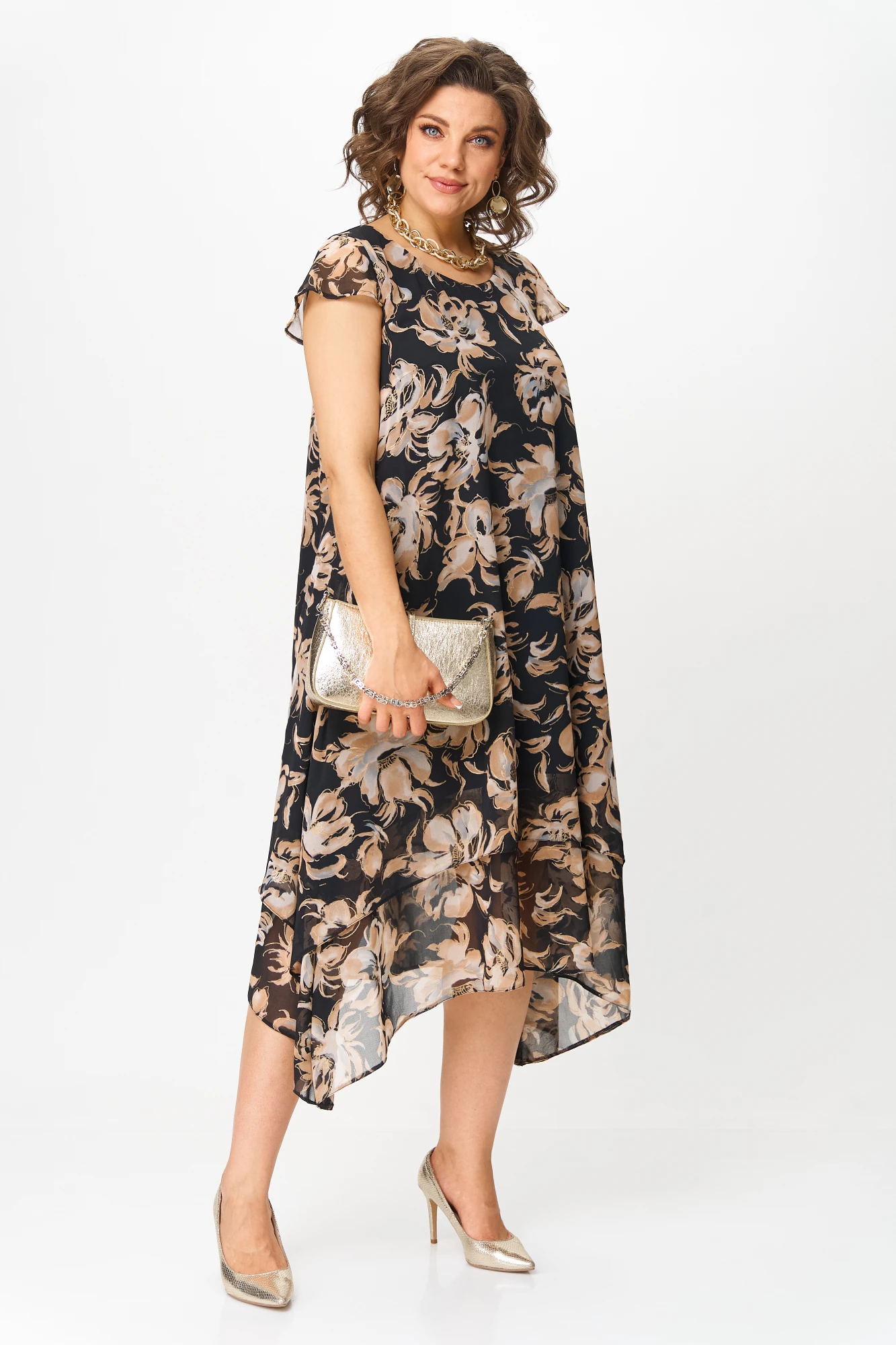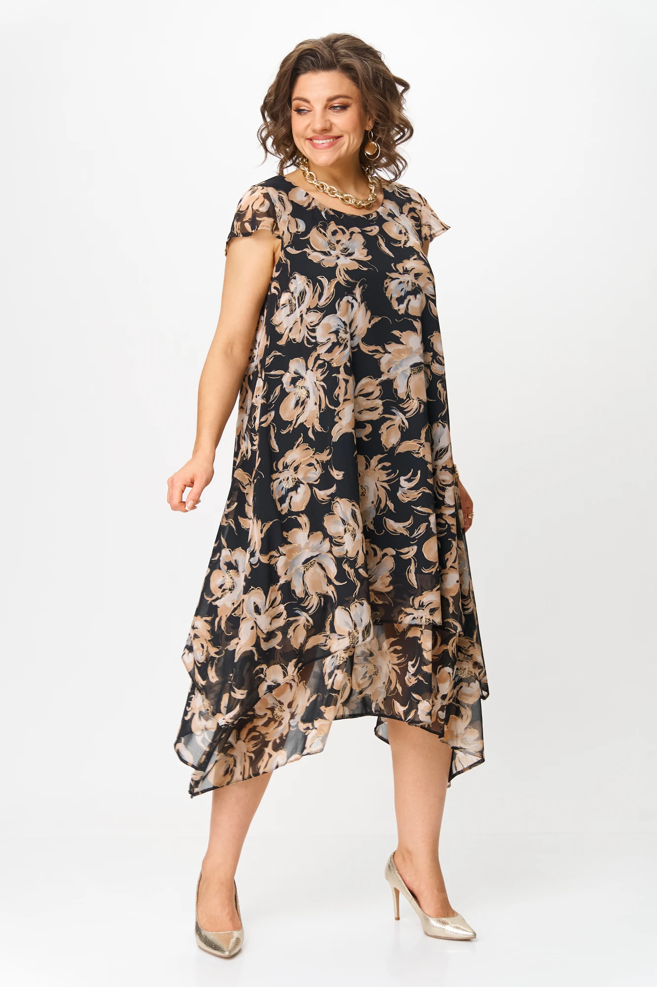 Платье SolomeaLux 958 А черный с бежевым+золотистый