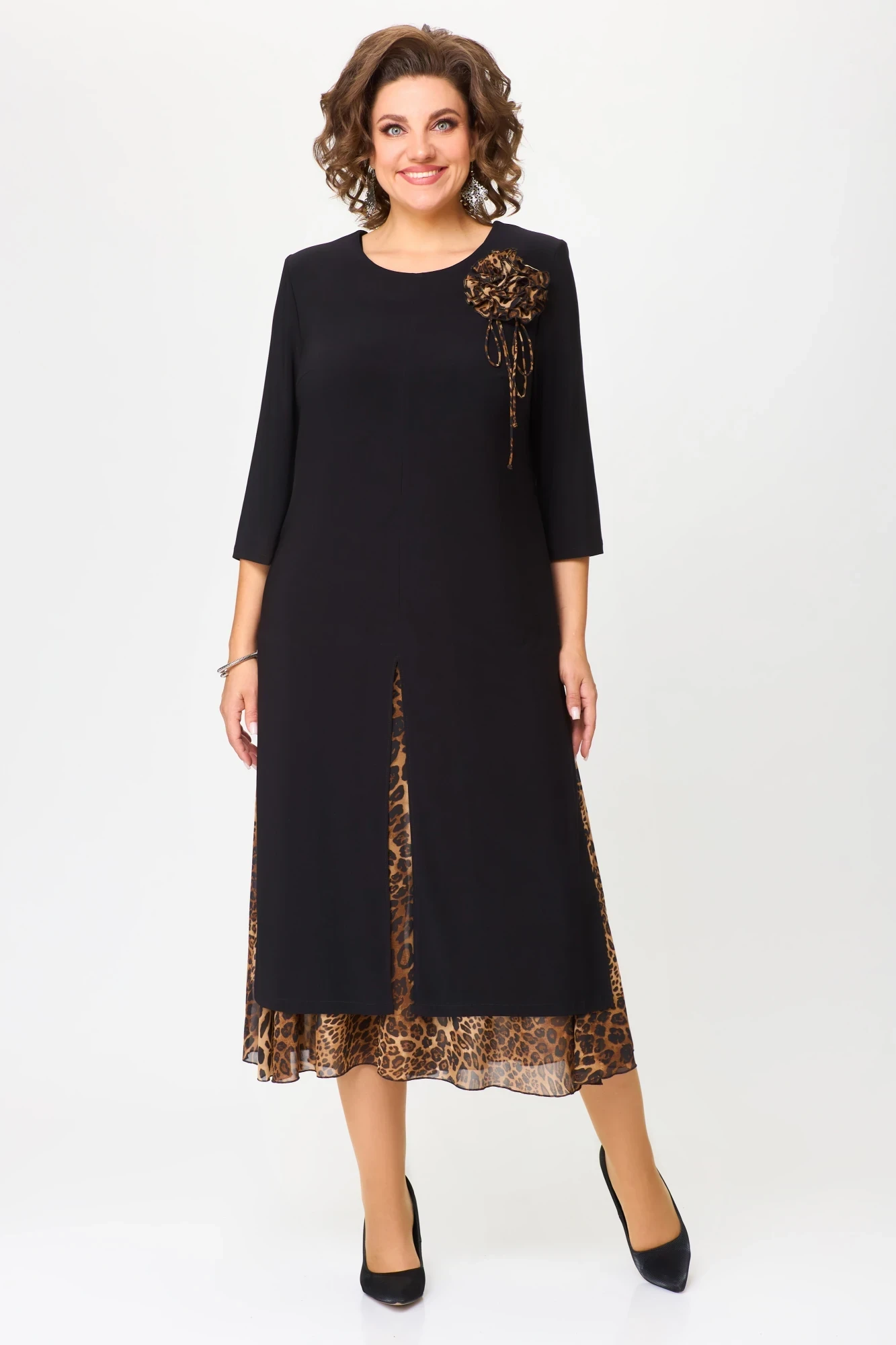 Нижнее платье силуэт полуприлегающий, по низу присборенный волан из шифона с модным леопардовым принтом.