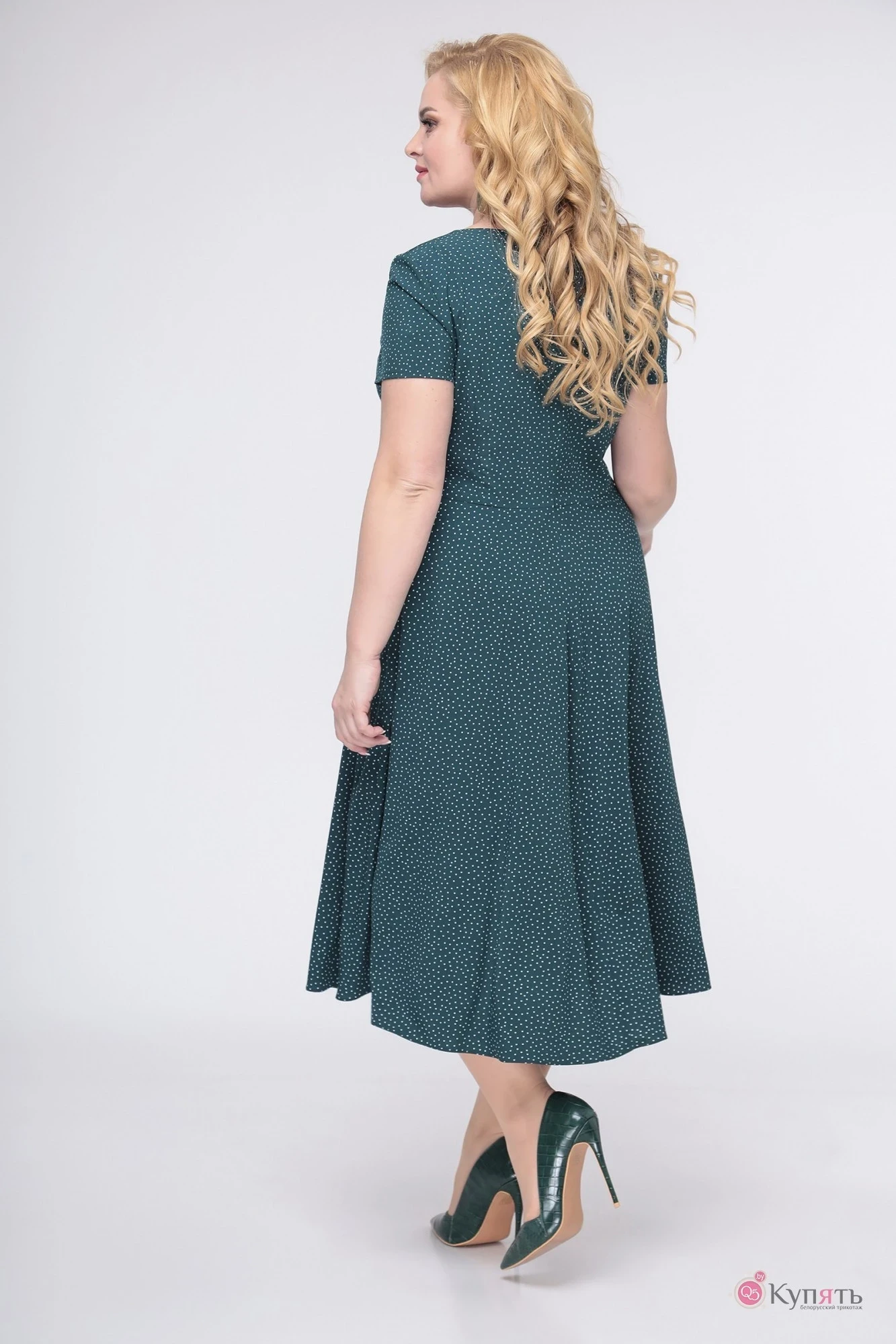 Платье Swallow 430 Зелёный в белый горох