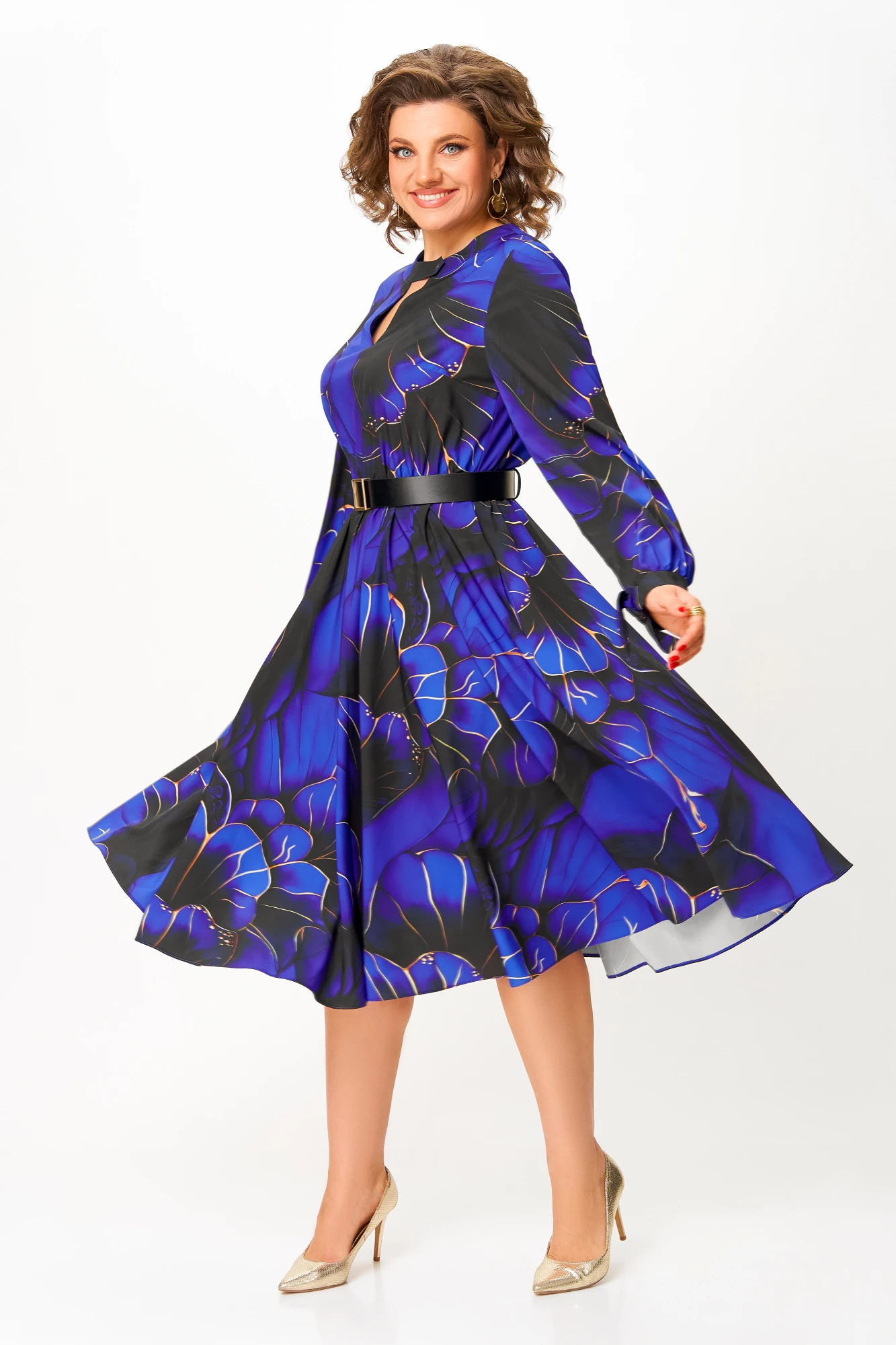 Платье Swallow 679.4 Ультрамарин, принт «чёрно- золотые цветы»