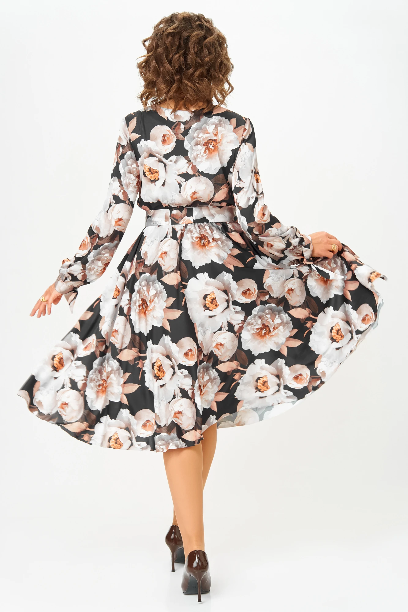 Платье Swallow 707.2 Чёрный, принт «бежево-молочные пионы»