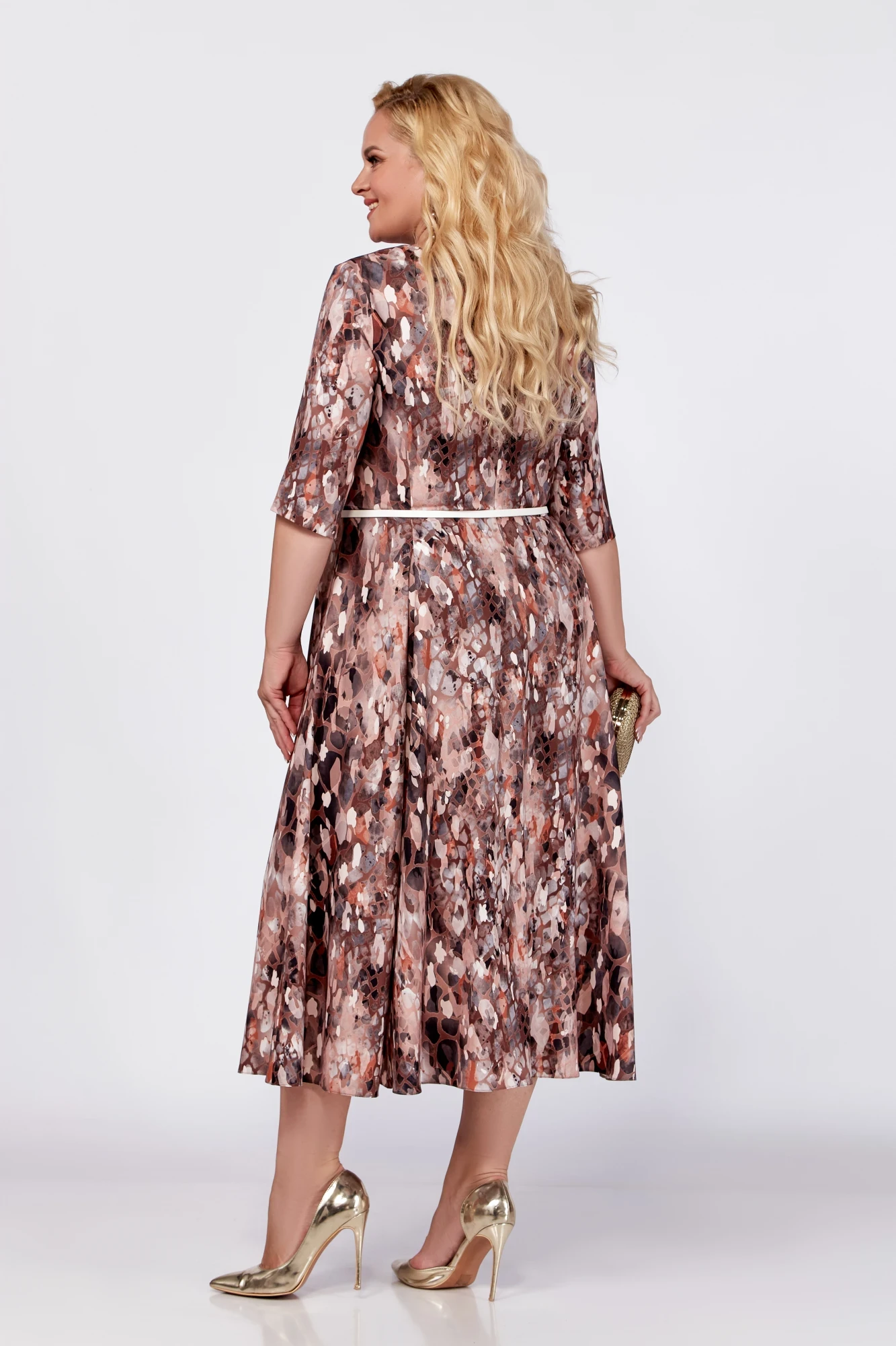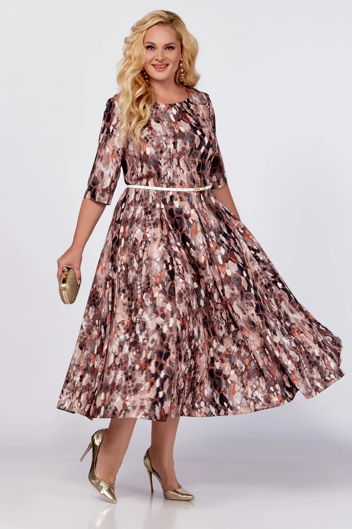Платье Swallow 765 Светло-коричневый в принт «цветные камни»