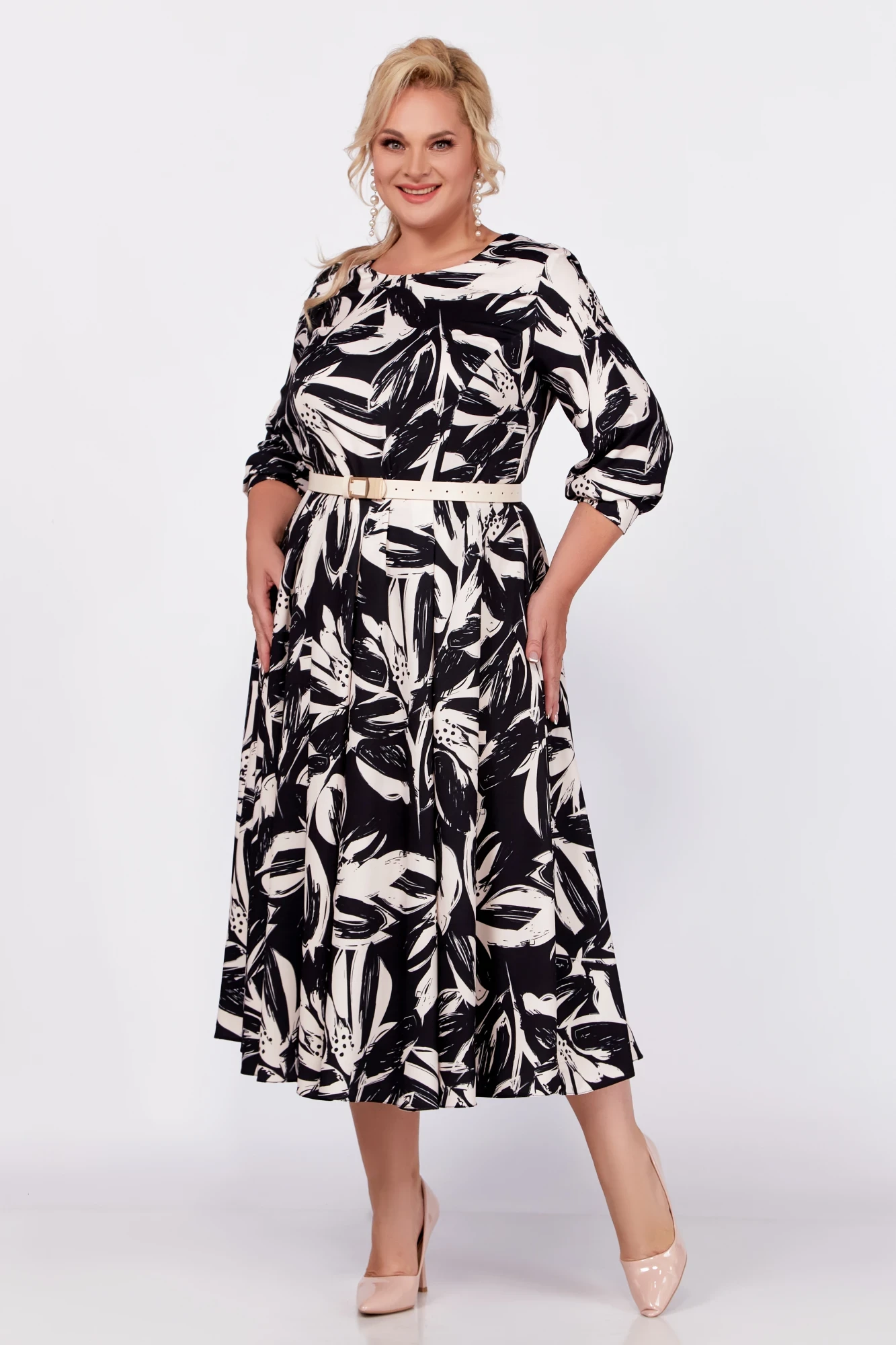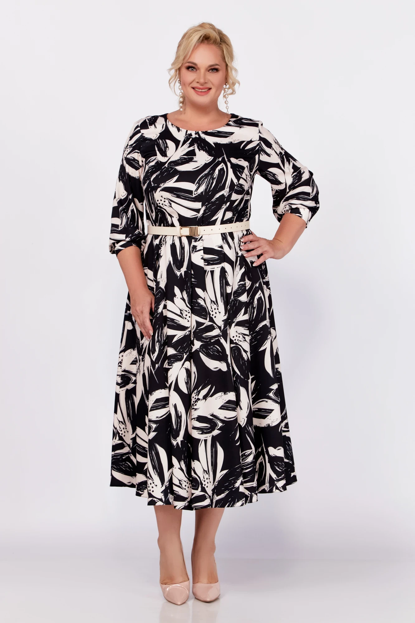 Платье Swallow 778 чёрный/принт бежевые цветы