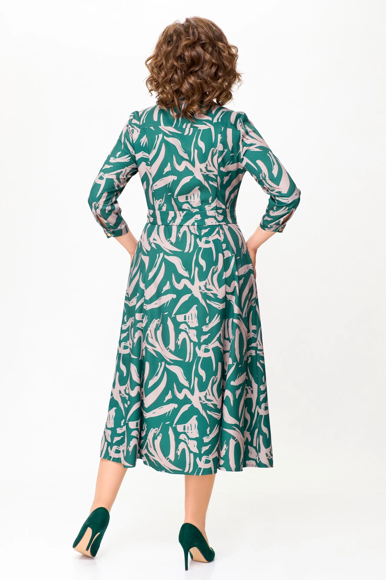 Платье Swallow 784.2 изумруд/принт бежевая абстракция