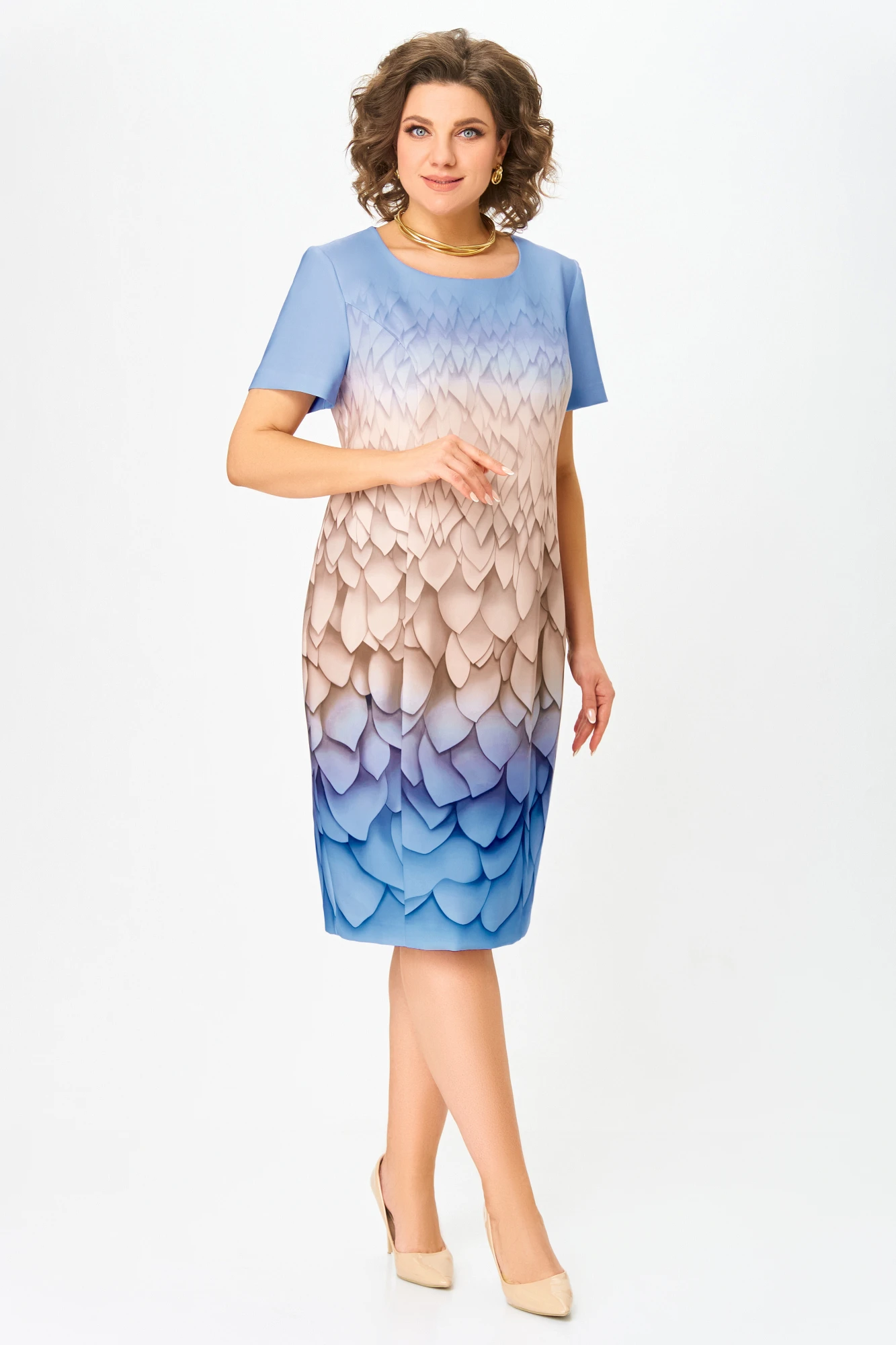 Платье Swallow 847.3 Голубой в бежево-песочный принт