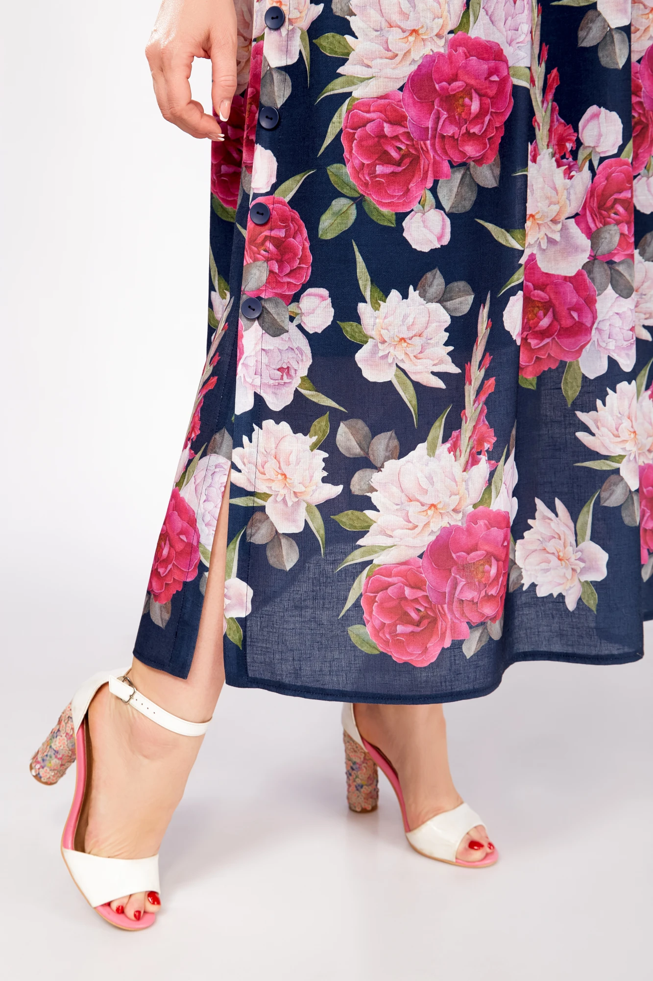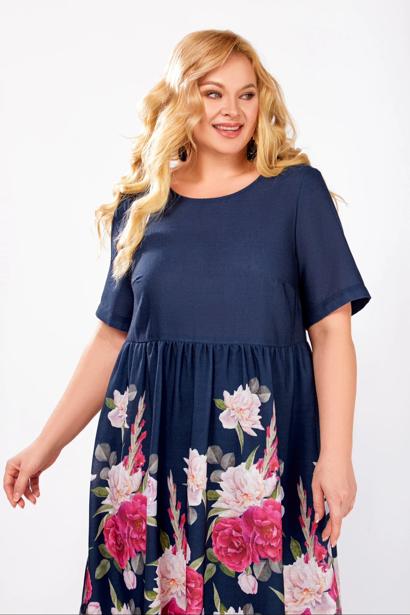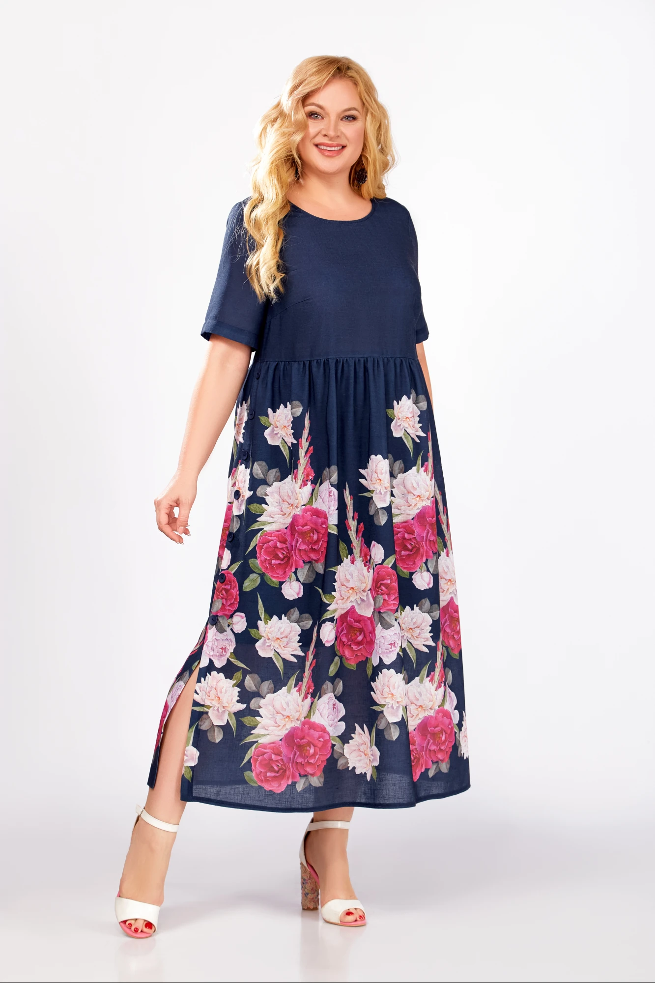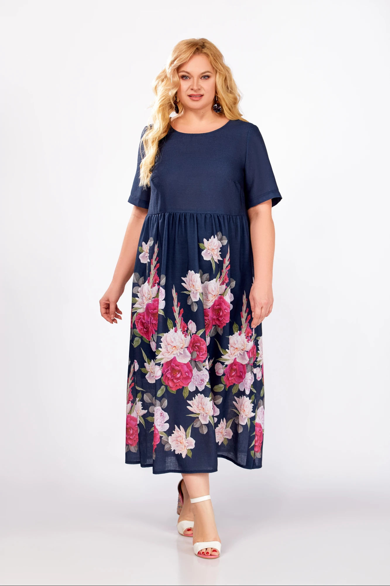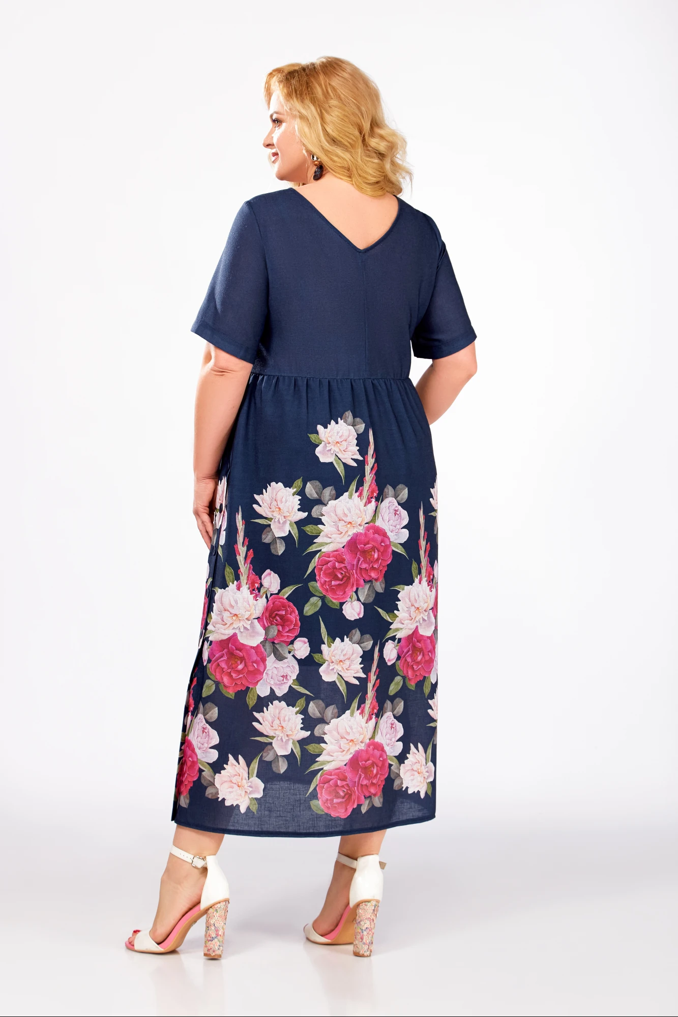Платье Swallow 849 Тёмно-синий молочные цветы