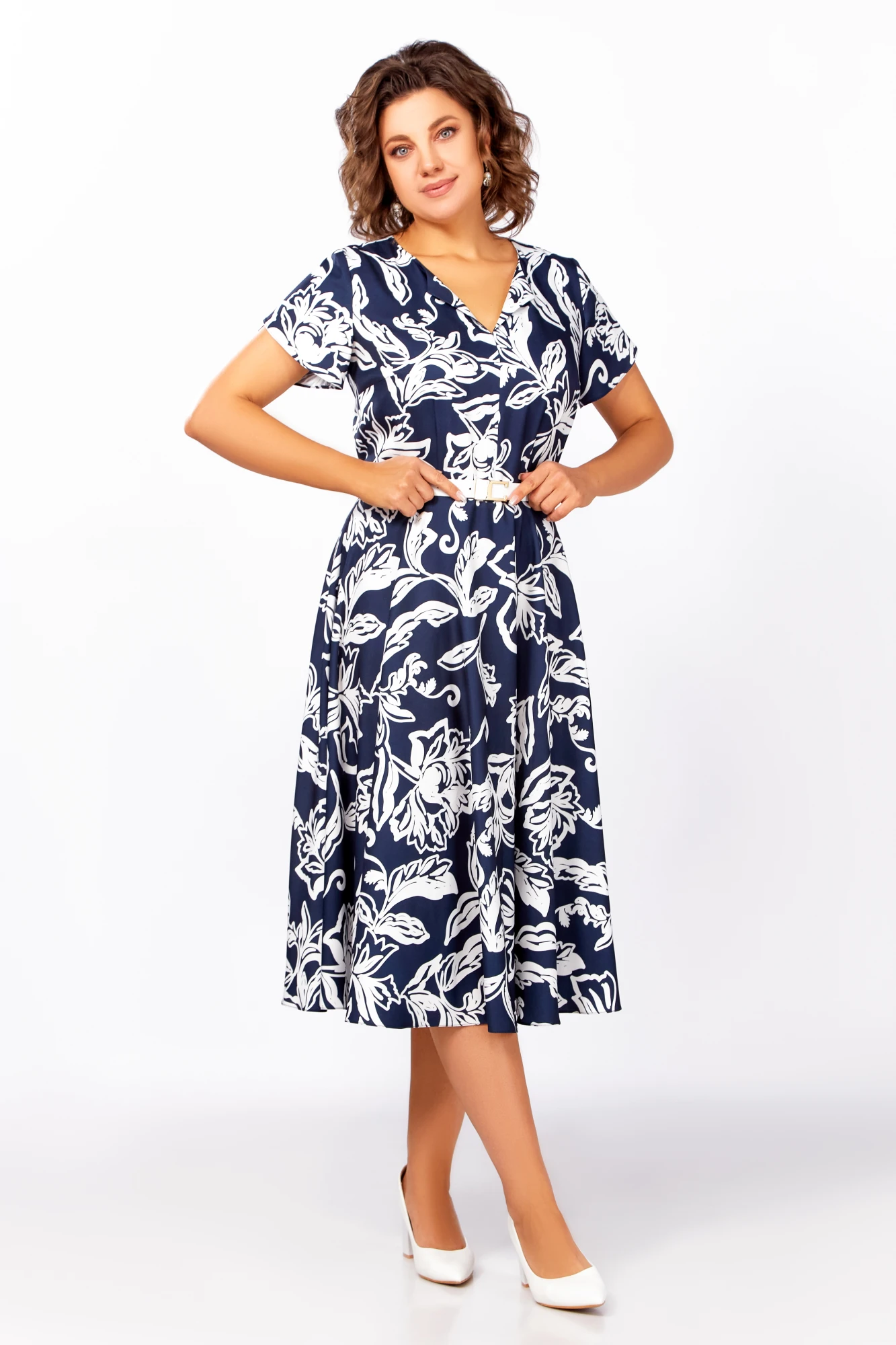 Платье Swallow 858 Глубинный_синий, белый_принт «цветы»