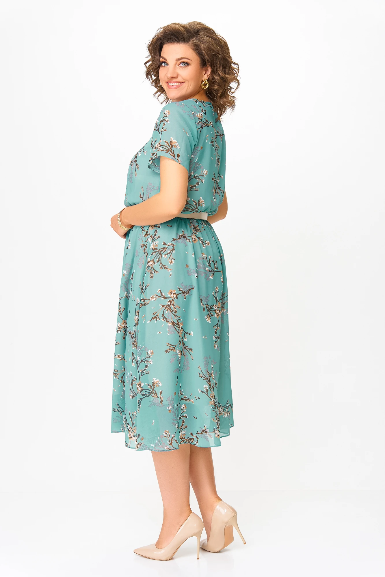 Платье Swallow 861.3 Бирюзовый, принт «коричневые веточки»