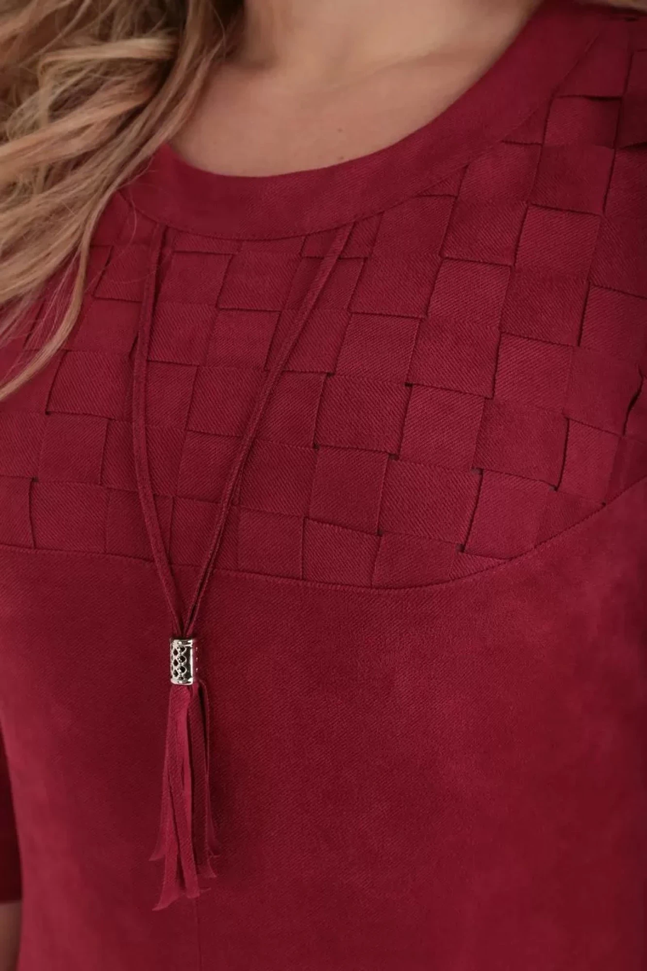 Платье лаконичного кроя, простое в своём исполнении, но в то же время элегантное за счёт выбранной ткани и благородного цвета. Акцентом служит плетёная кокетка, выполненная вручную.