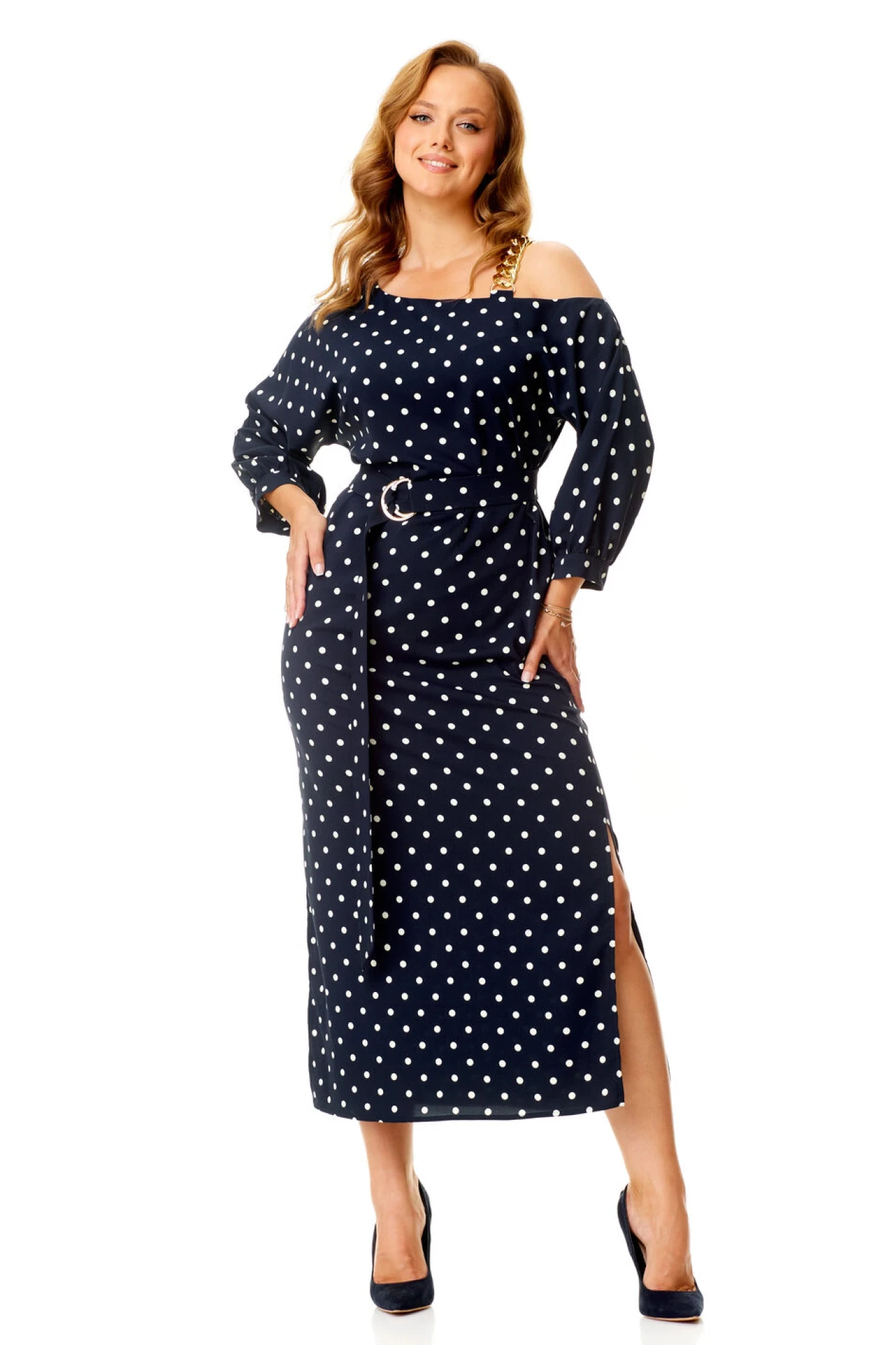 Горловина ассимертричная округлой формы с декоративной цепью на левом плече.