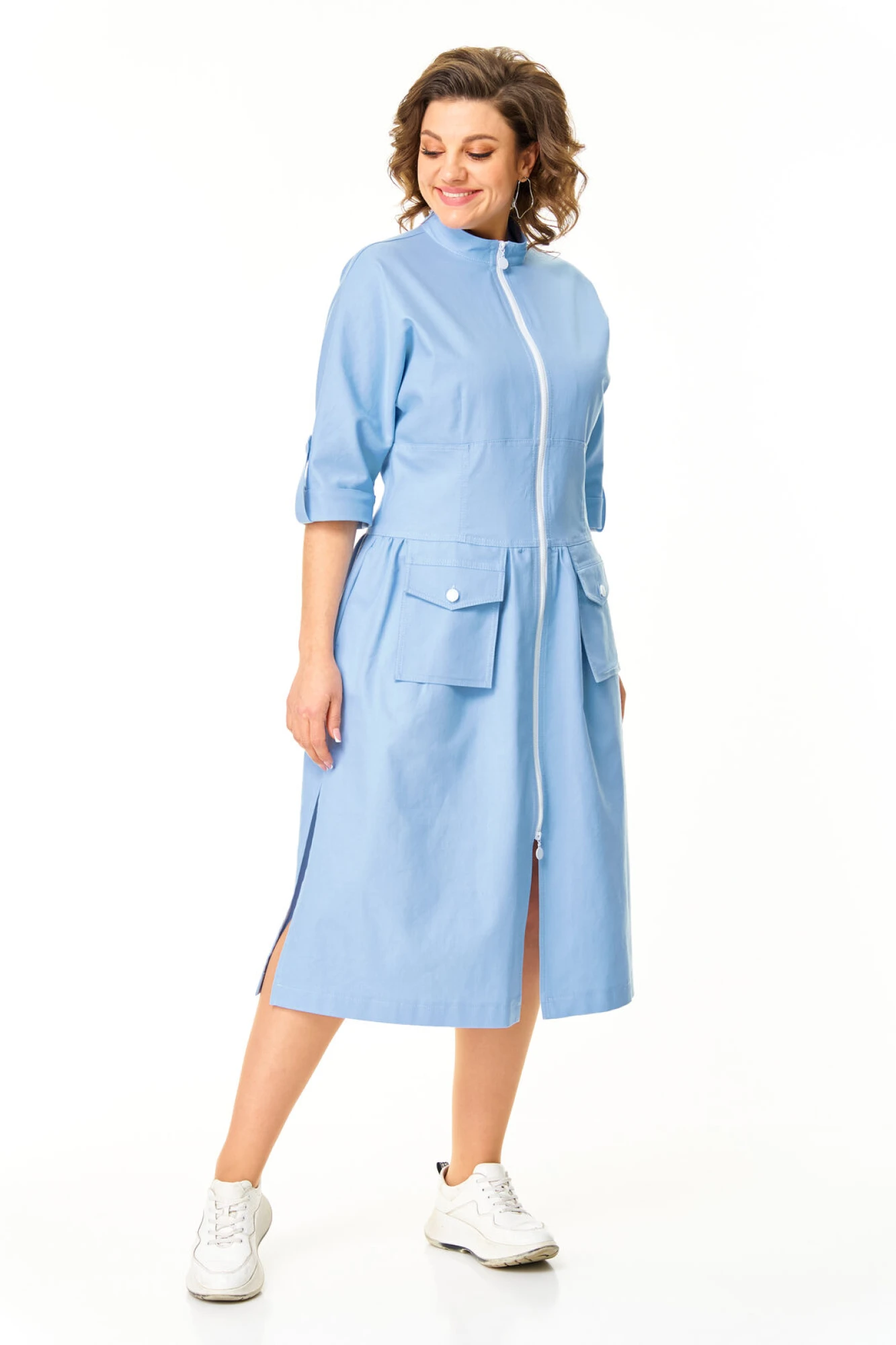 По переду и спинке выполнен ряд декоративно-конструктивных рельефов для придания силуэтности платью.