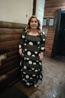 Длина платья от высшей точки плечевого шва до низа 136 см (р 50-54), 137 см (р 56-60). Длина рукава 46 см (р 50-54), 47 см (р 56-60).