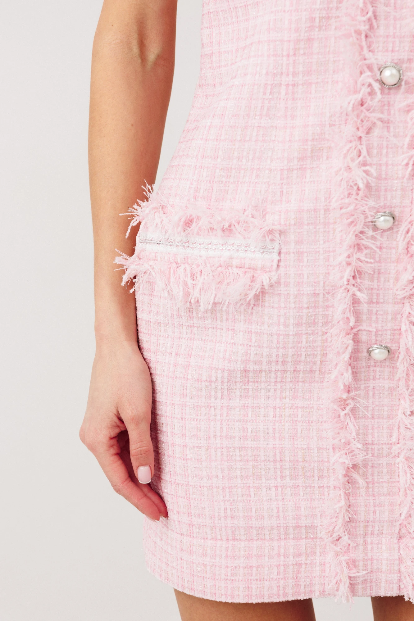 - планка с бахромой по передней части платья с пуговицами
