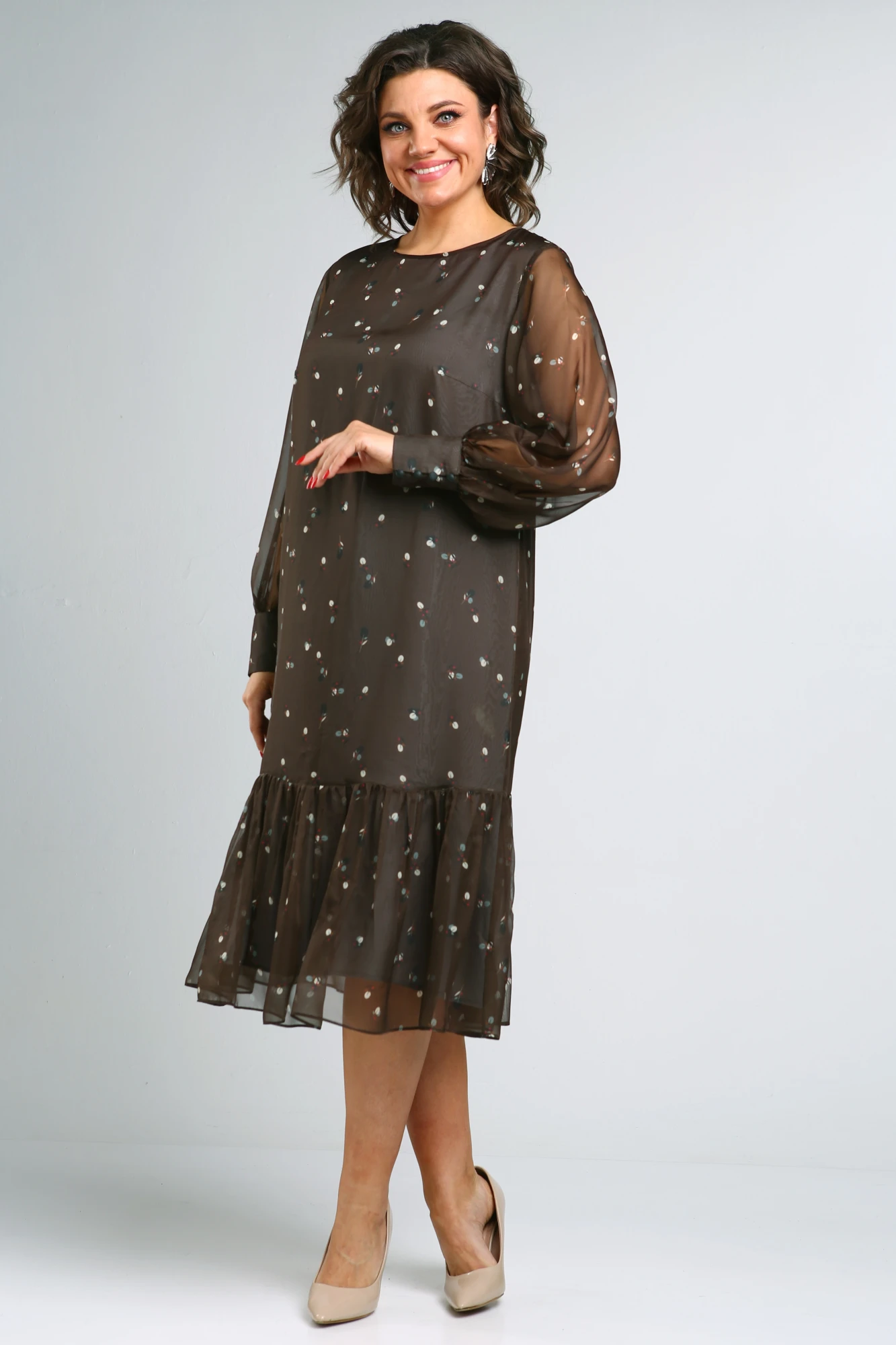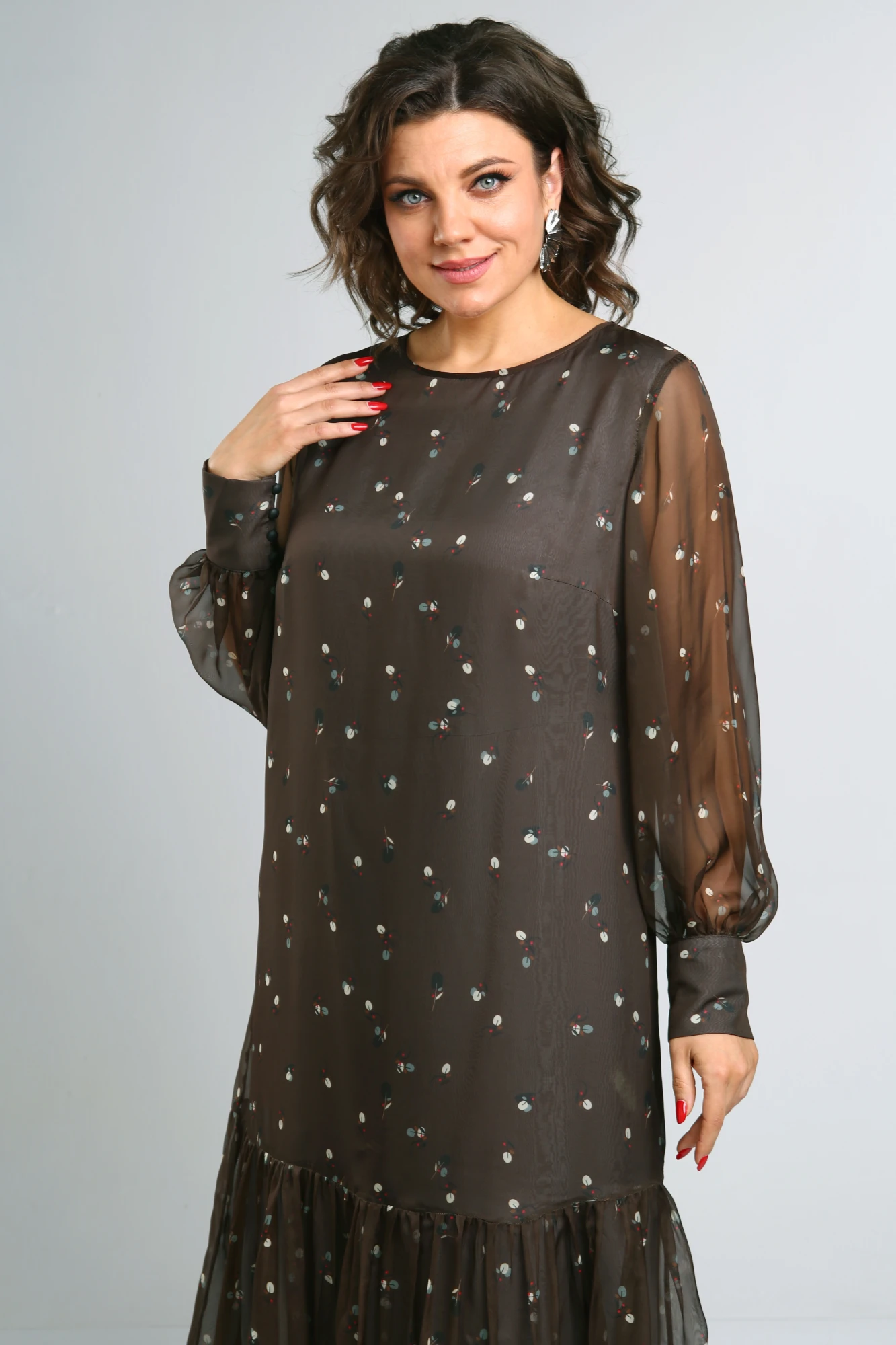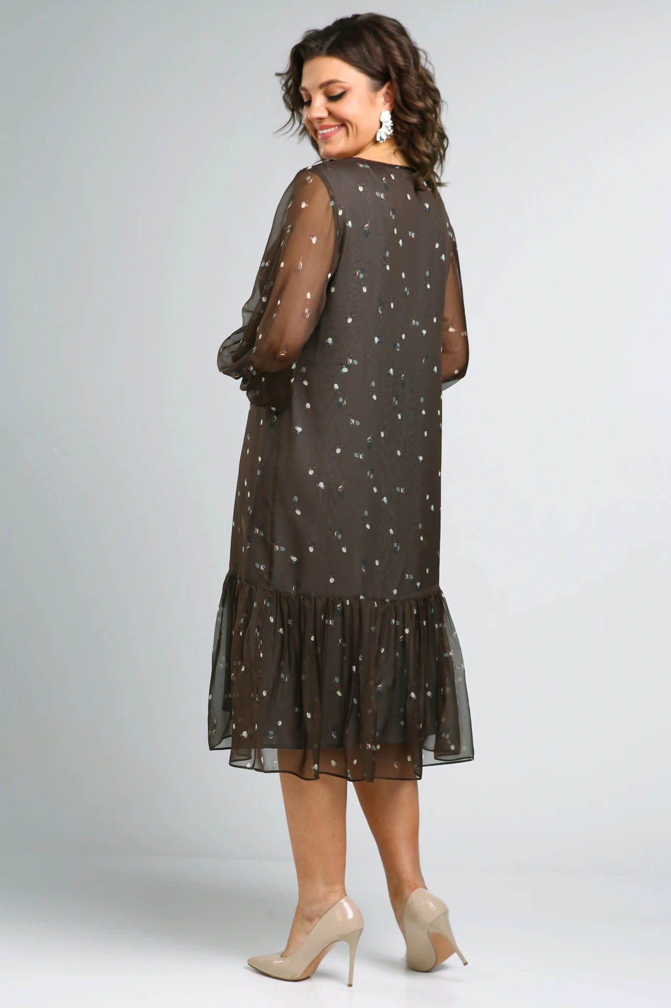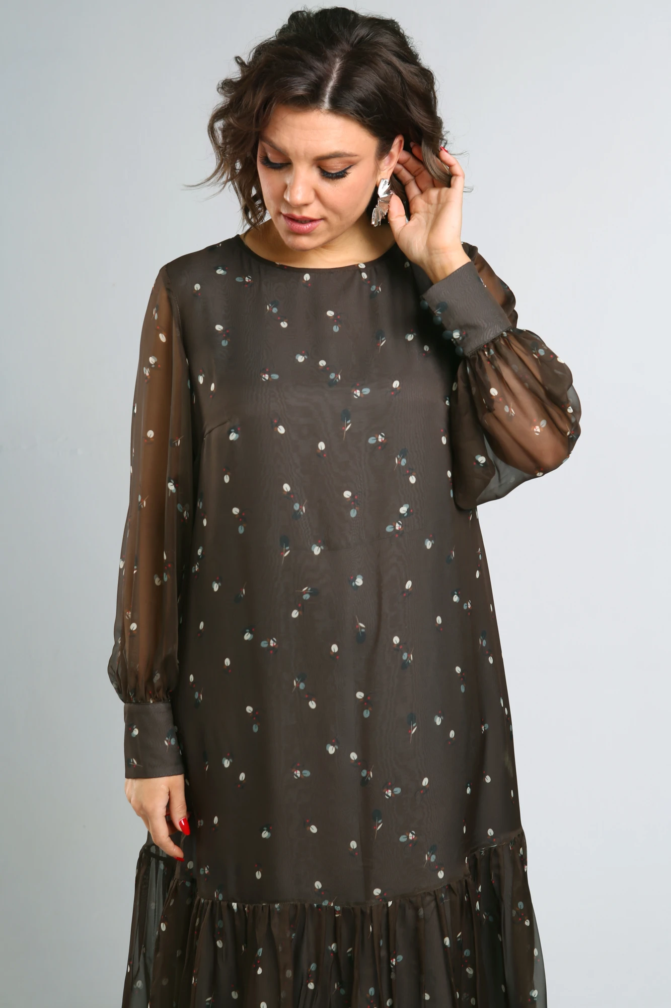 Платье YOUR SIZE 2249 Темно-оливковый в цветочный принт