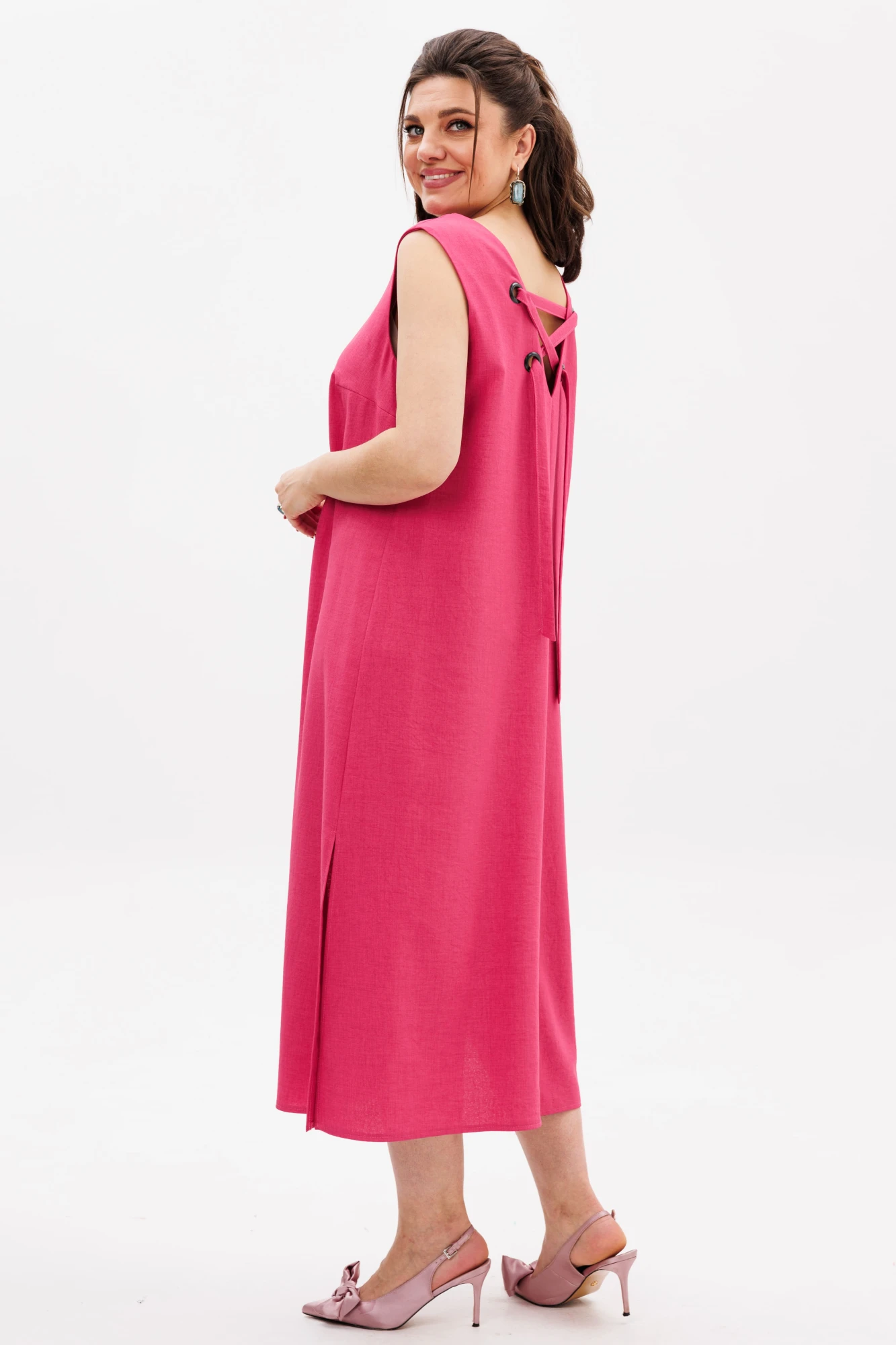 Сарафан силуэт трапеция. На спинке v вырез и люверсы, с игривыми завязками, которые подчеркивают женственность и изящество образа. Разрезы добавляют шарма образу, а также удобства.