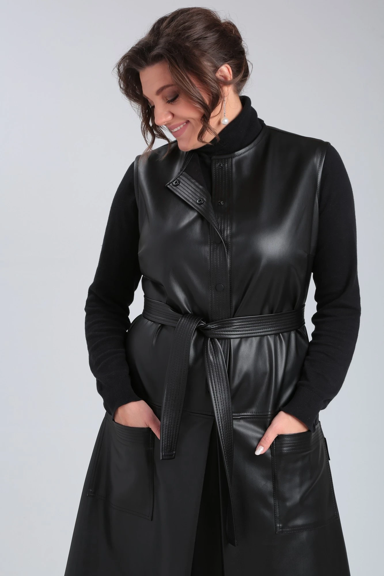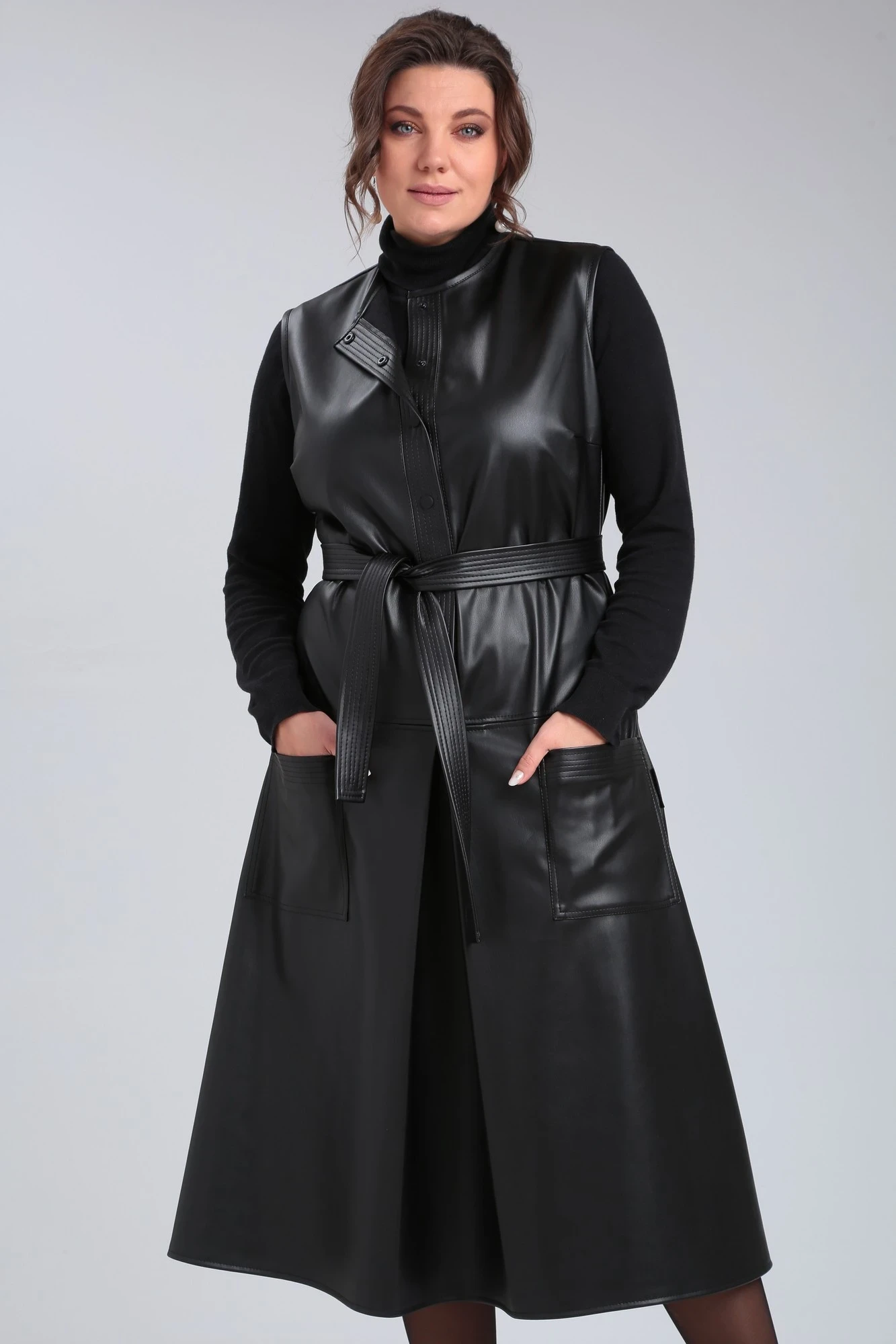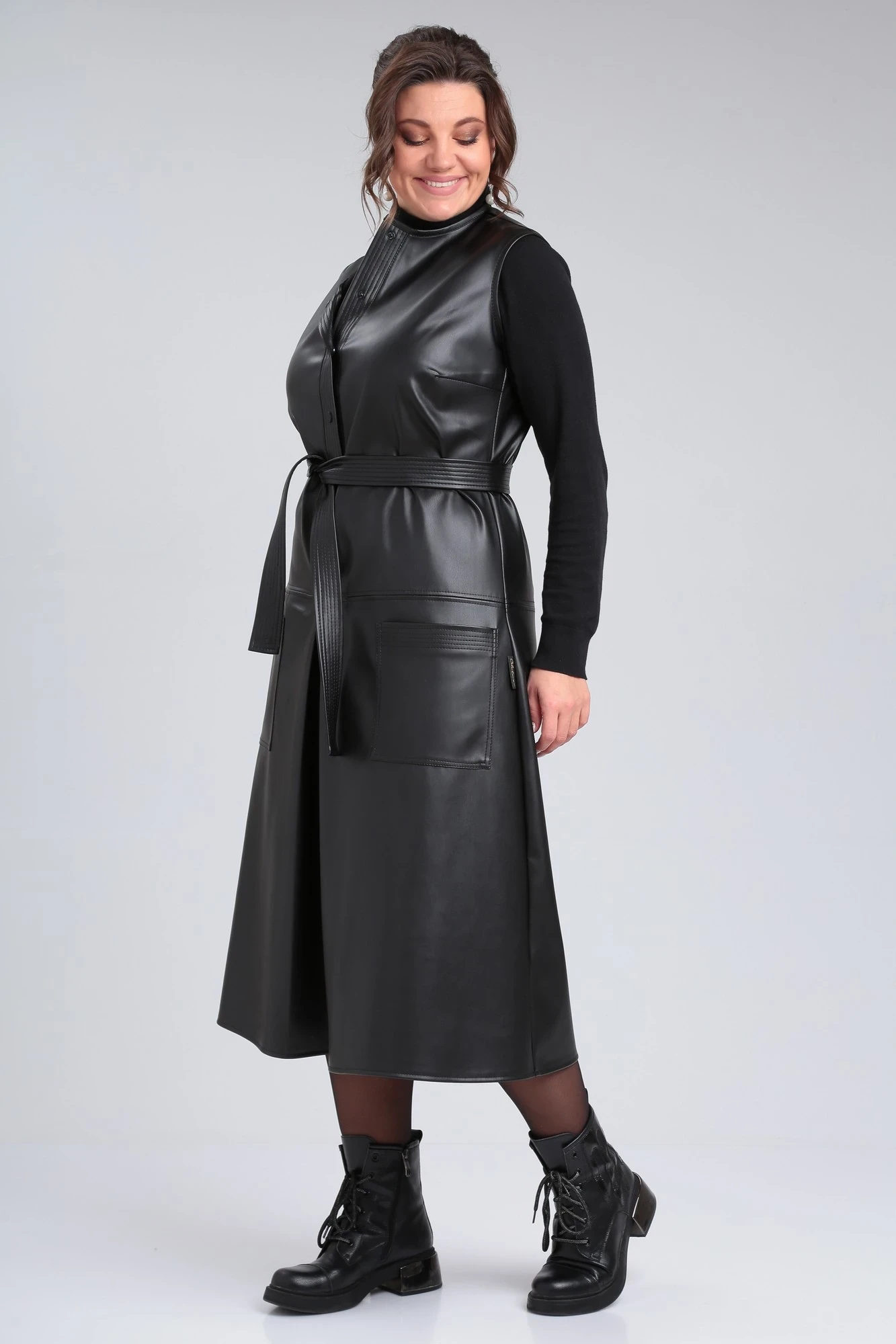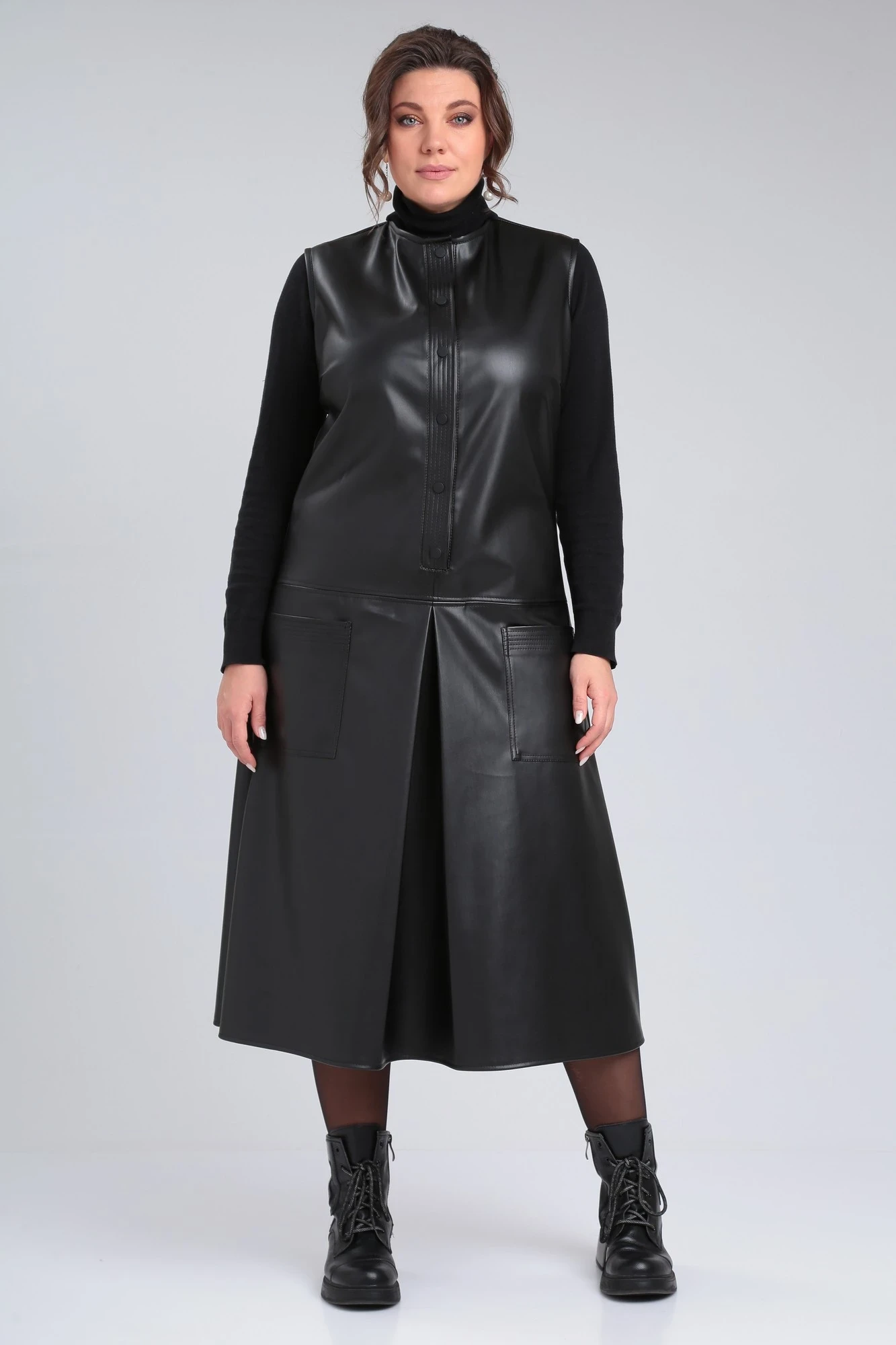 Сарафан без подкладки, выполнен из экокожи высокого качества, изнанка в ткани - замш. Ткань тянется. Кнопки на сарафане металлические.