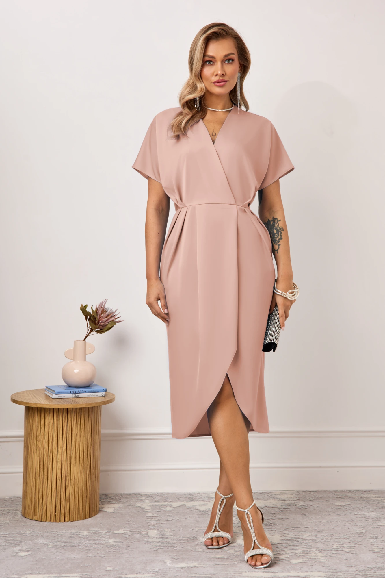 Элегантное нарядное платье, выполнено из роскошной струящейся плательной ткани с добавлением вискозы. Платье с имитацией запаха по переду, отрезное по линии талии. В боковом шве платья потайная молния застежка. Рукав цельнокроеный, спущенный. Спинка платья отрезная по талии, с резинкой. В комплекте идет съемный пояс, декорированный пришивным украшением (Украшение может отличатся от фотографии!), с резинкой и застежкой на пуговицы в цвет платья. Модель удобная и практичная, вы будете в нем выглядеть неотразимо и нарядно.