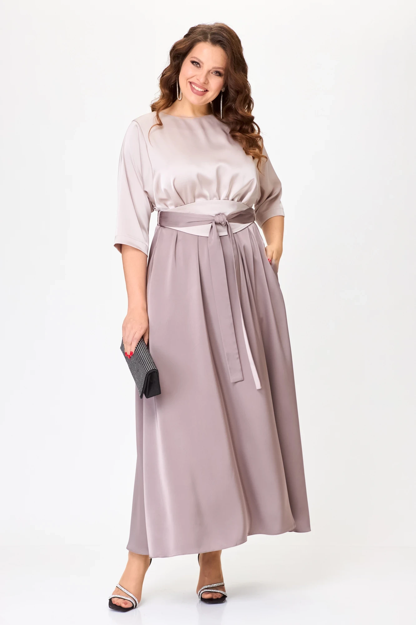 Вечернее атласное платье Anastasia Mak 1229 бежевый+капучино