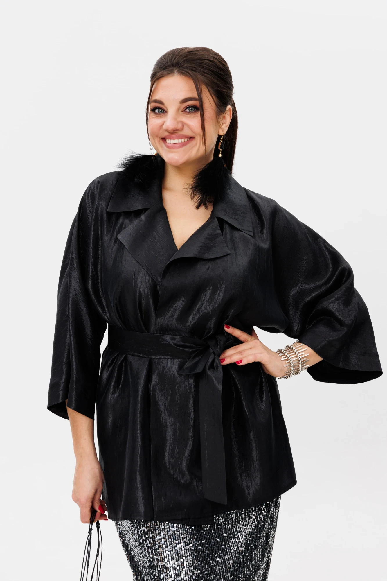 Комбинируйте с классическими жакетами или стильными рубашками, чтобы каждый раз создавать новый и эффектный образ. Настоящая находка для тех, кто хочет блистать и быть в центре внимания!