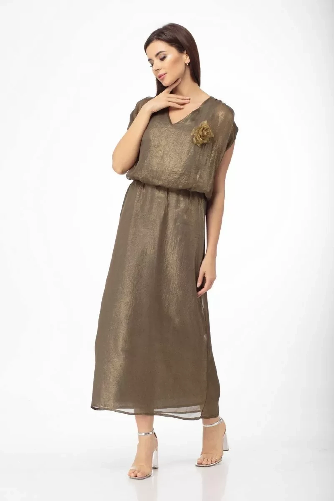 46,48,50,52Нарядное платье из струящегося шифона с напылением под золото.
