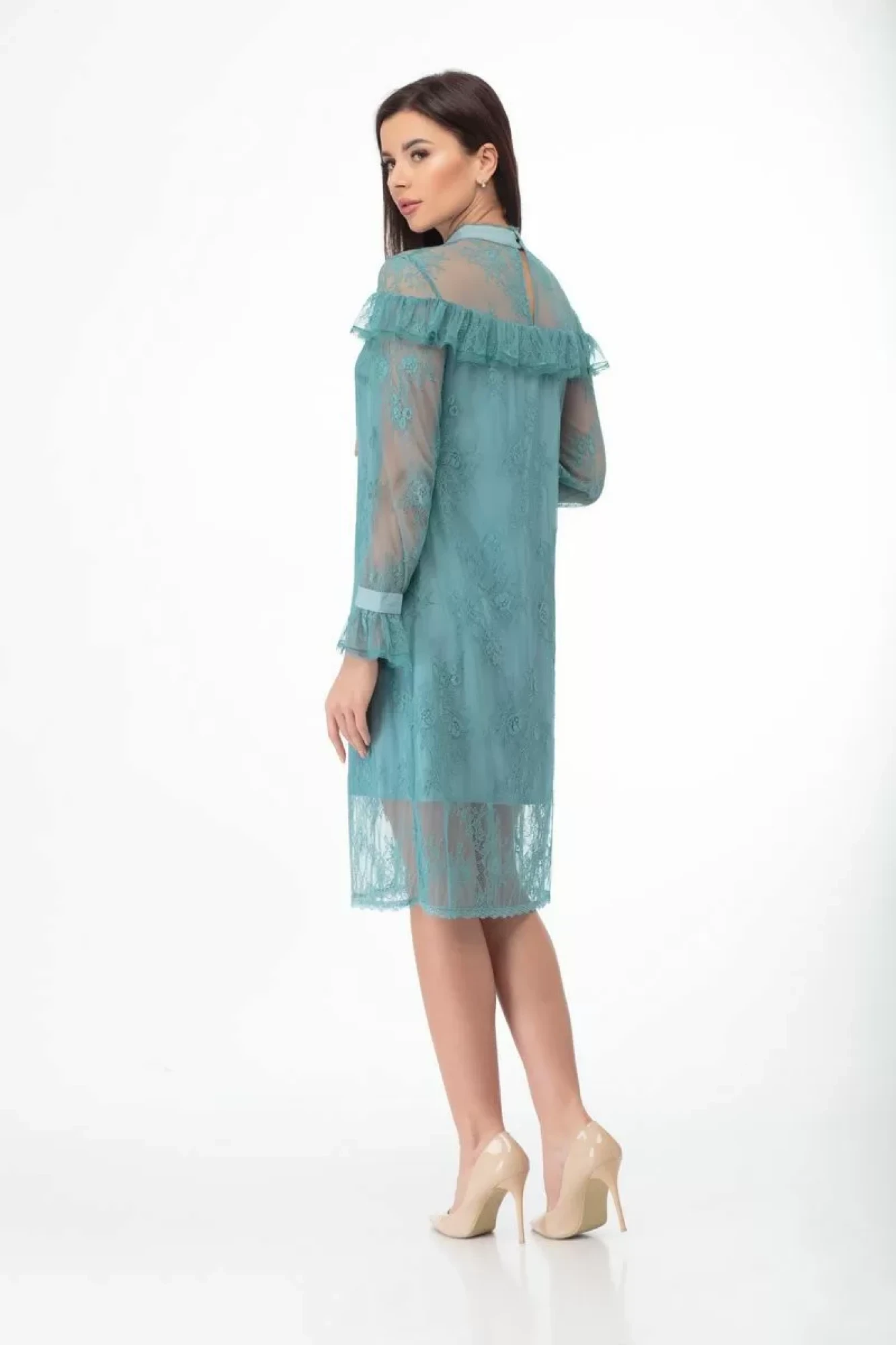 Кокетки по переду и спинке с воланом демонстрируют линию плеч и придают хрупкость образу.