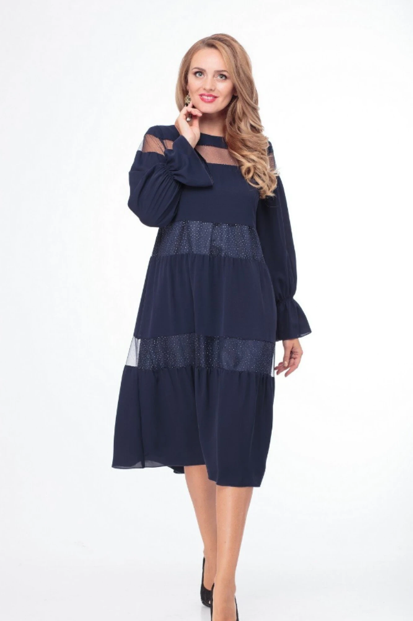 Вечернее платье с сеткой Anelli 789 темно-синий каскад