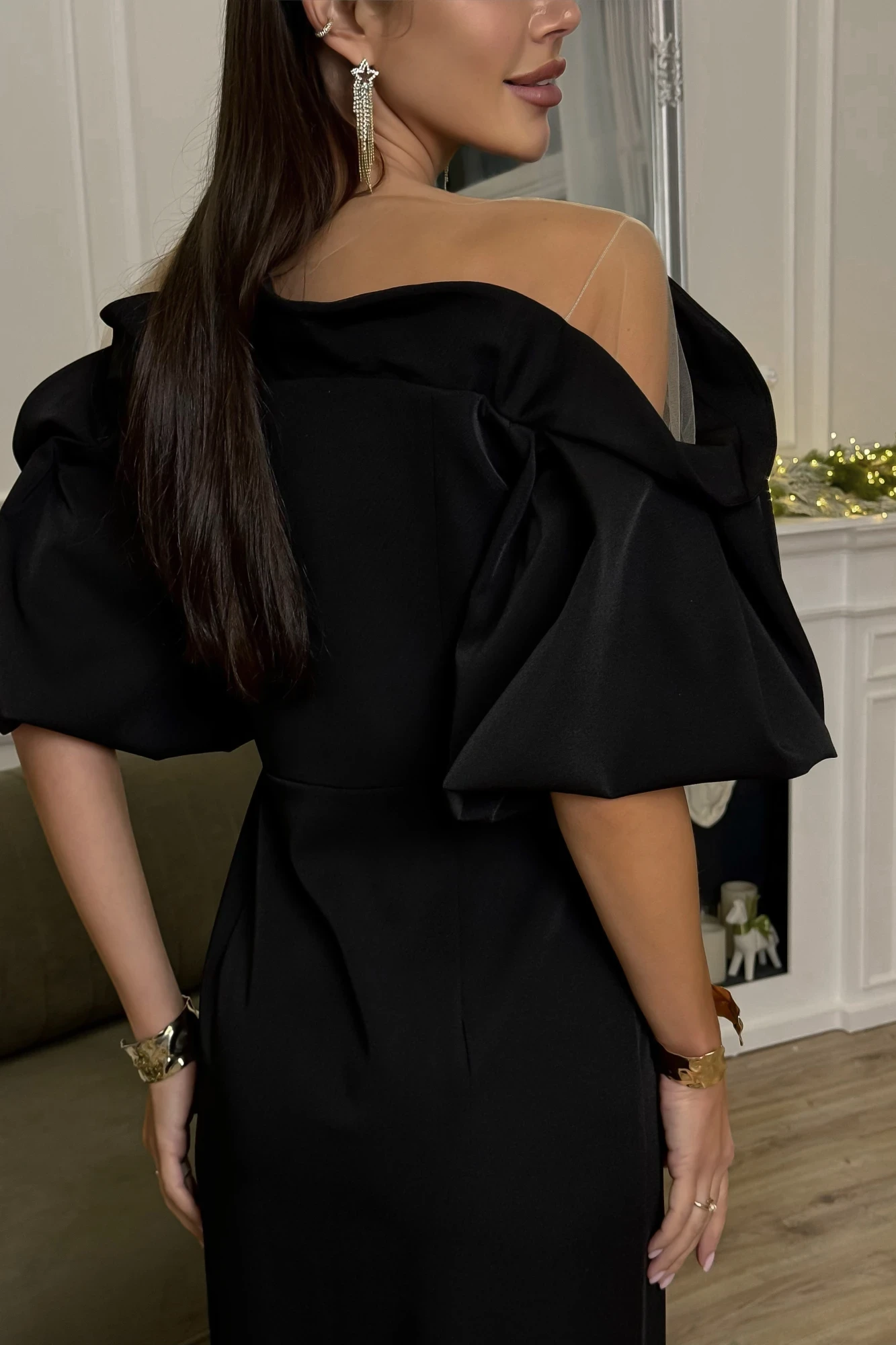 Вечернее платье с разрезом AURA of the day 3287 чёрный + нюдовая сетка