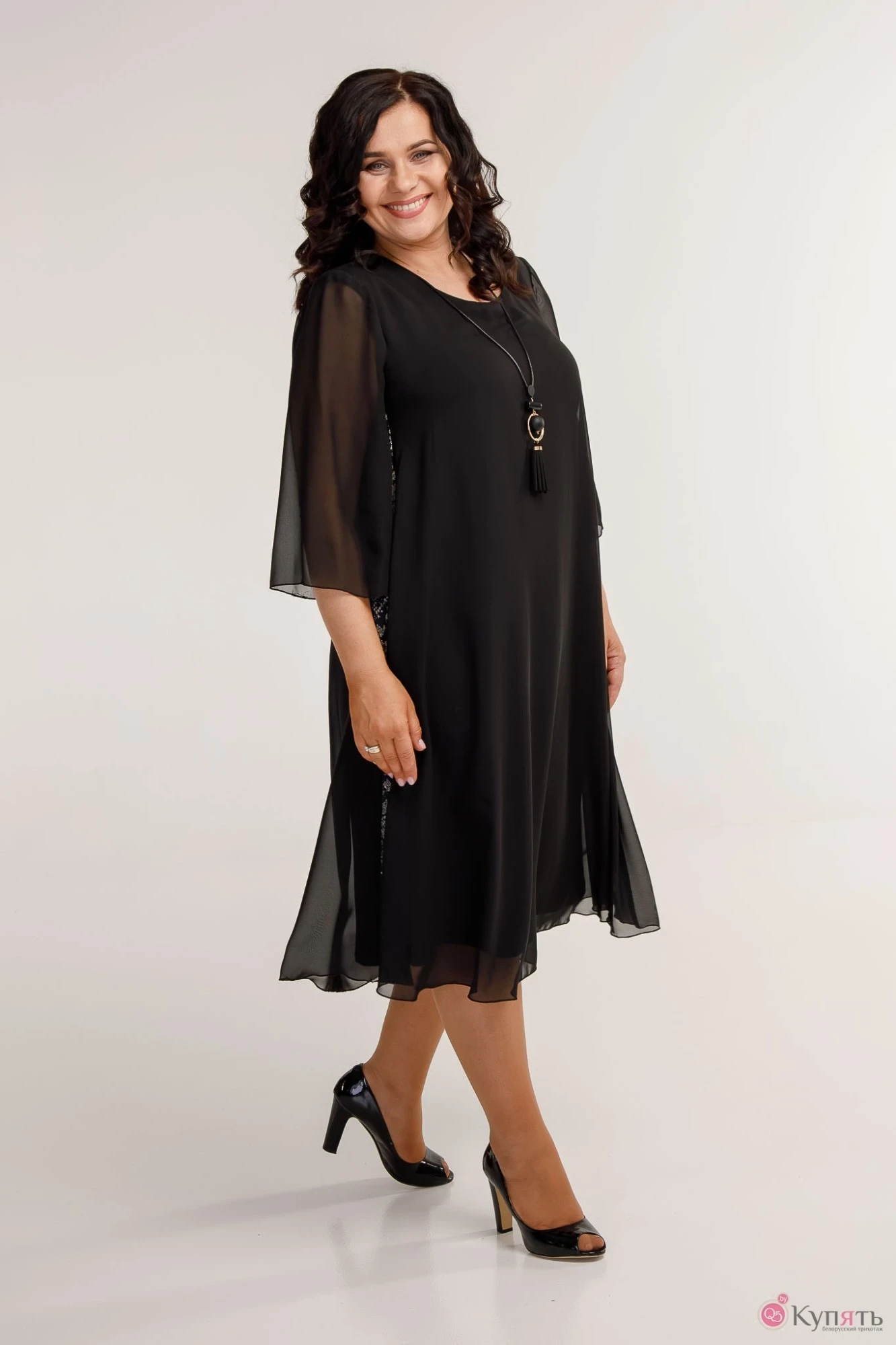 Платье свободного силуэта расширенное к низу, с притачной декоративной планкой по бокам, рукав втачной.