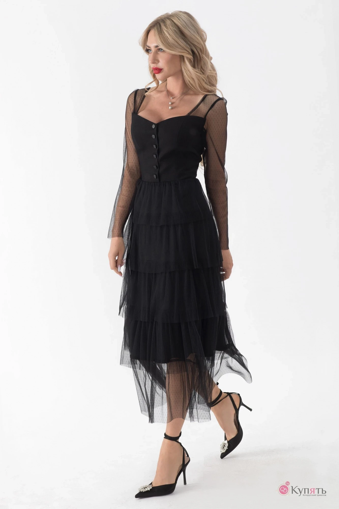 44,46,48Цветовая гамма для верха, подкладки, фурнитуры, отделки: платье двухслойное, из ткани в одной цветовой гамме. Верхний слой- сетка