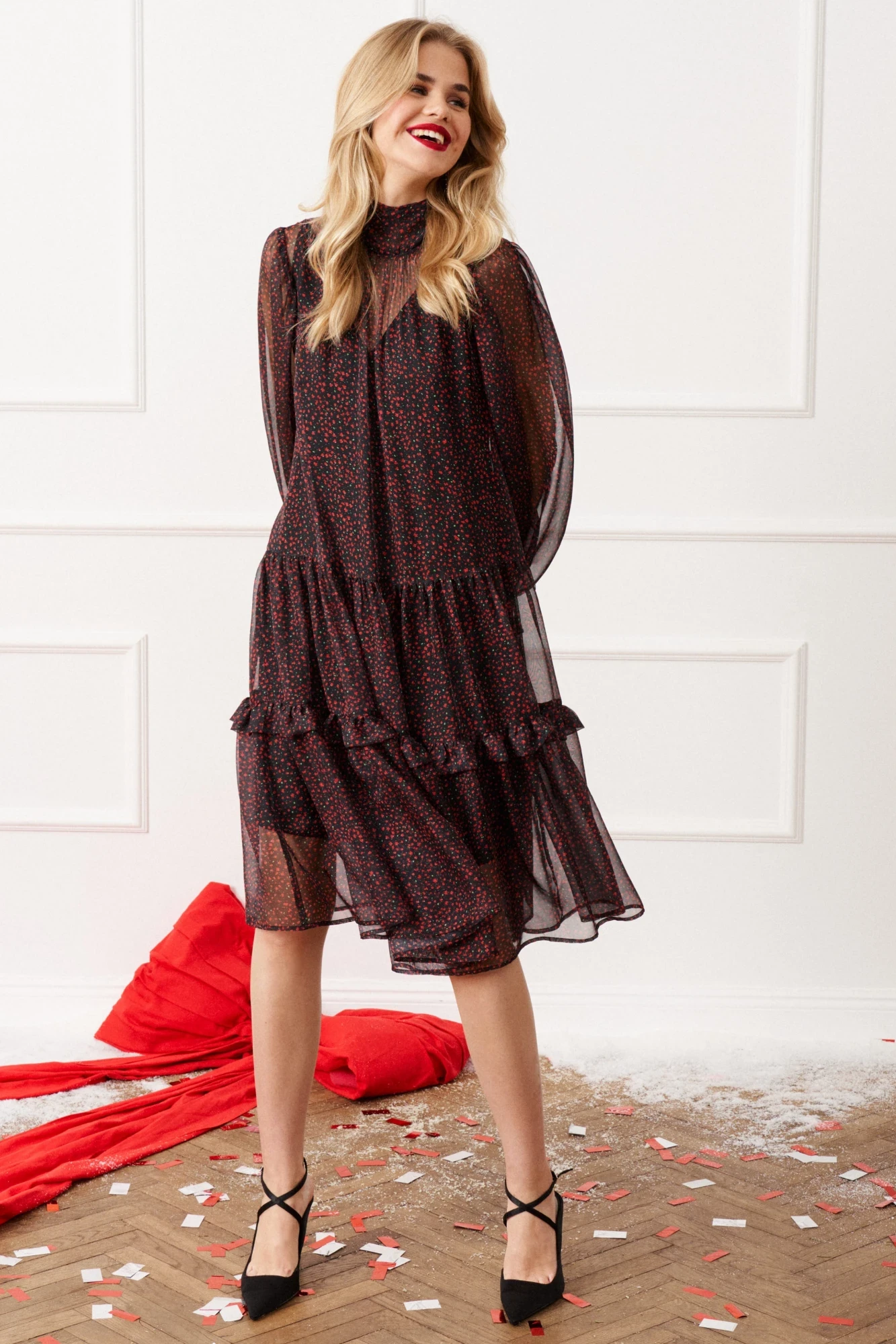 Шифоновое платье Lokka 1544 красный принт