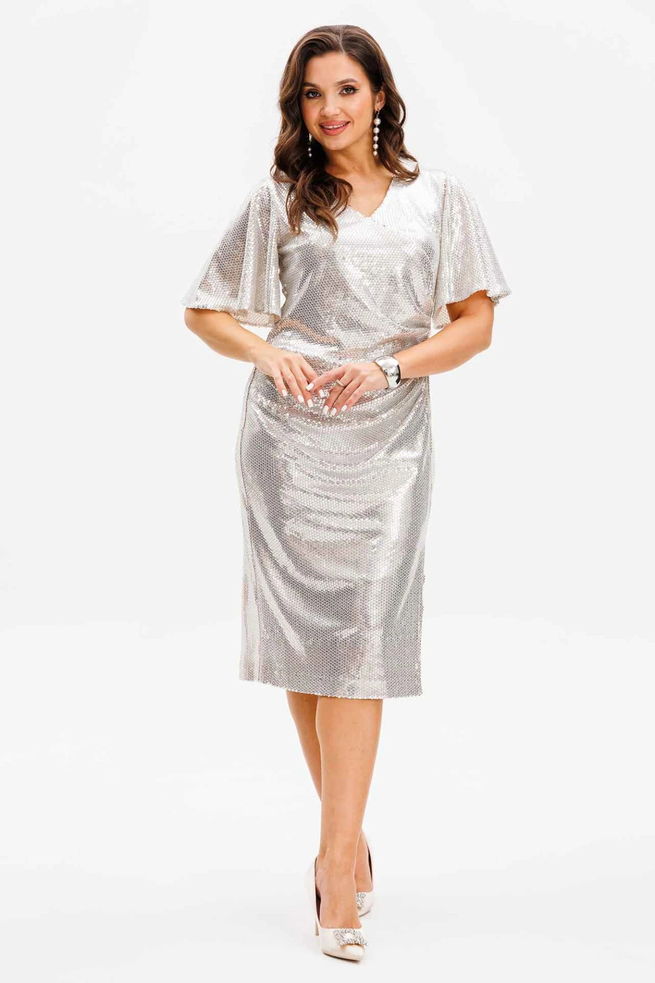Вечернее платье с пайетками MisLana 1045 серебро (пайетки)