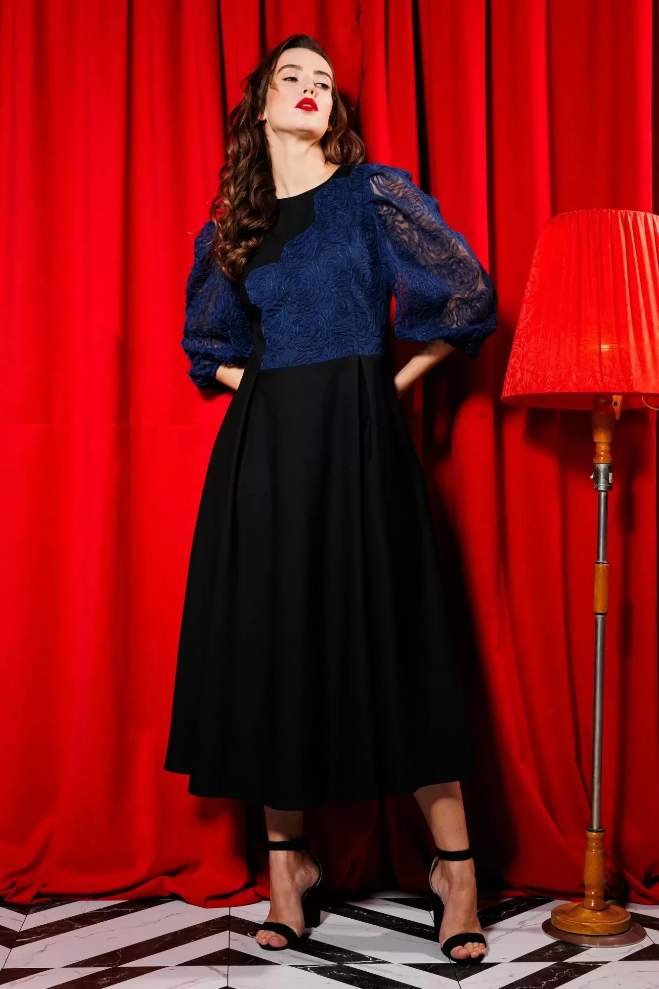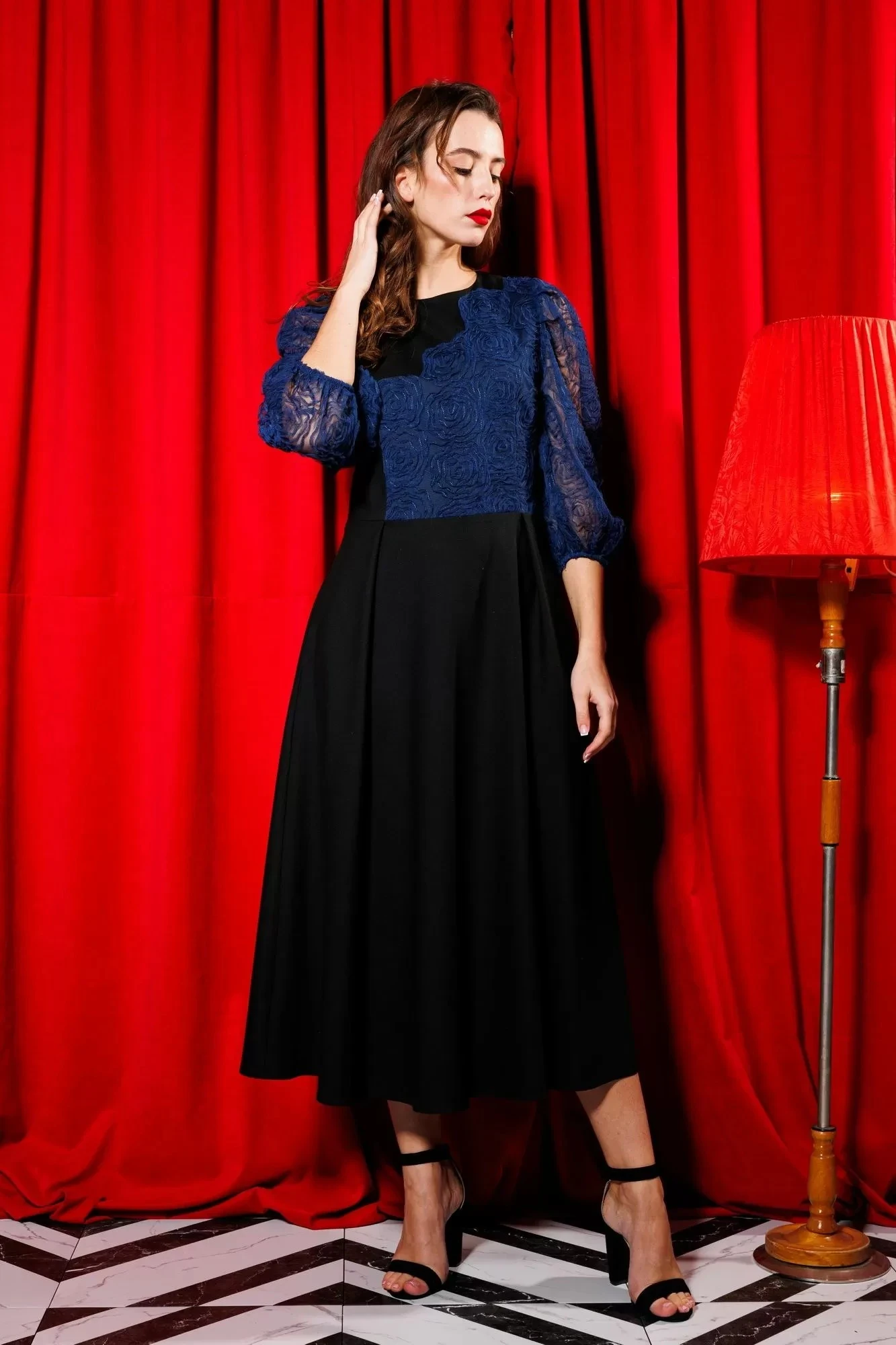 Вечернее платье с сеткой NikVa н416-2 глубокий синий и чёрный