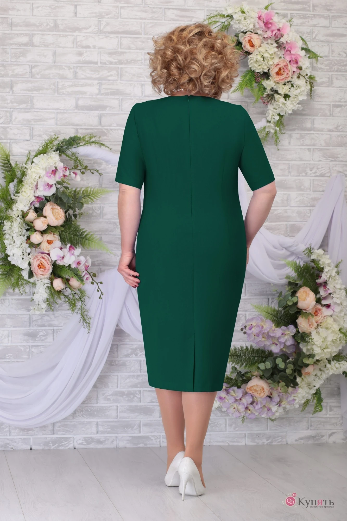 54,56, 58 ,60,62,64,66Комплект женский, состоящий из платья и блузки. Платье полуприлегающего силуэта, прямое от бедра, на подкладке из дышащей, приятной на ощупь и достаточно эластичной ткани. Длина посередине спинки 108,0 см. Рельефы на детали переда выходят из проймы, проходят через центр груди и переходят в талевые вытачки. Спинка с талевыми выточками. В среднем шве спинки обработана застёжка на потайную тесьму молнию и шлица. Рукава втачные, одношовные, с фигурным, обтачным подрезам в виде волны посередине. На подрез рукава нашиты 10-ть бусинок. Длина рукава 29 см. Горловина углублённая, обтачная, спереди в виде волны. Изделия с плечевыми накладками.