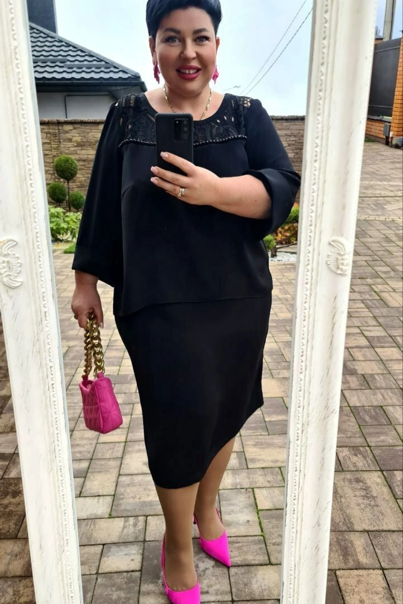 Длина платья от высшей точки плечевого шва до низа 108 см (р.50-54), 111 см (р.56-60).