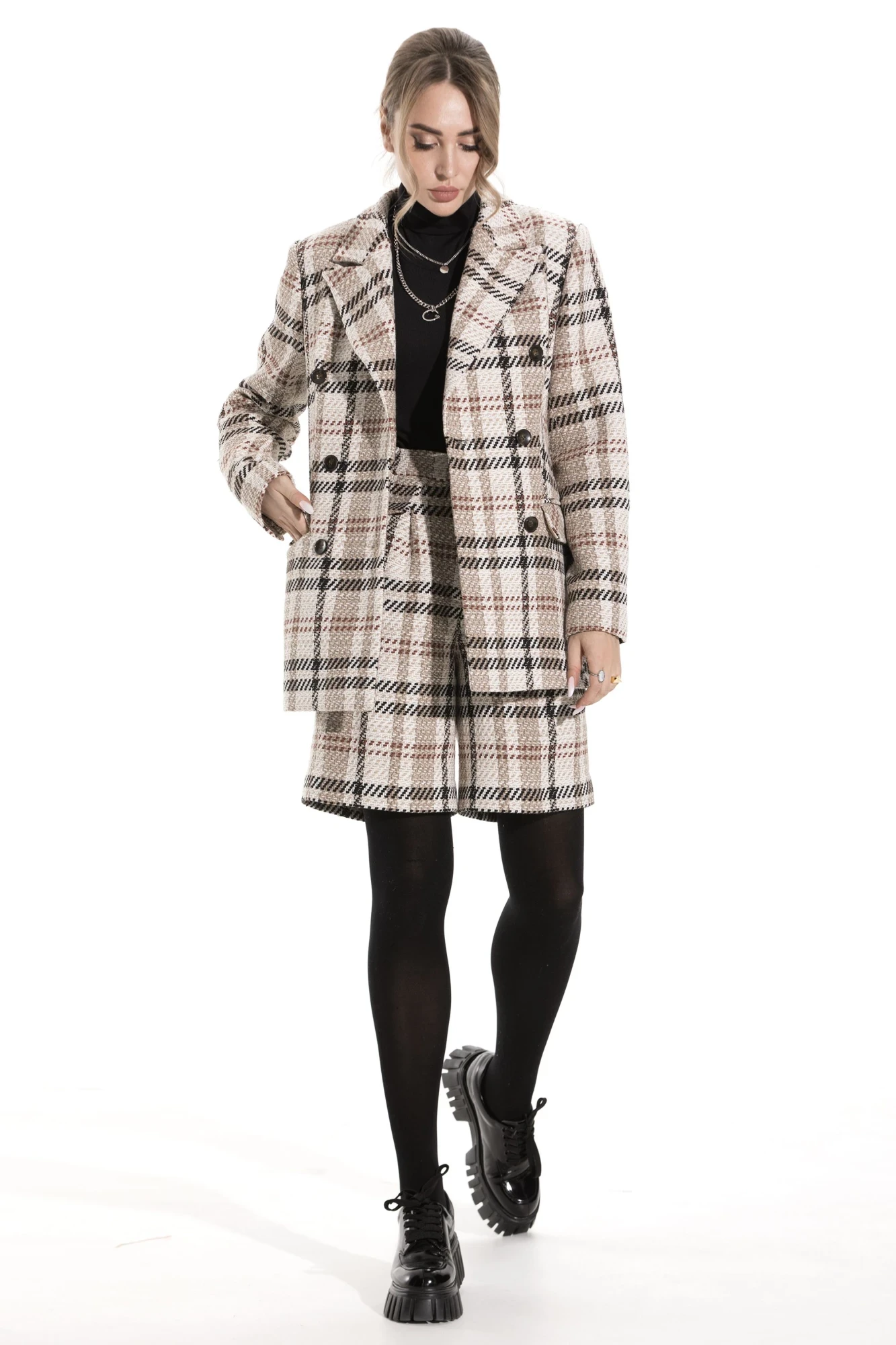 Цветовая гамма для верха, подкладки, фурнитуры, отделки: шорты из ткани с геометрическим рисунком. Все отделочные строчки в тон основной ткани.