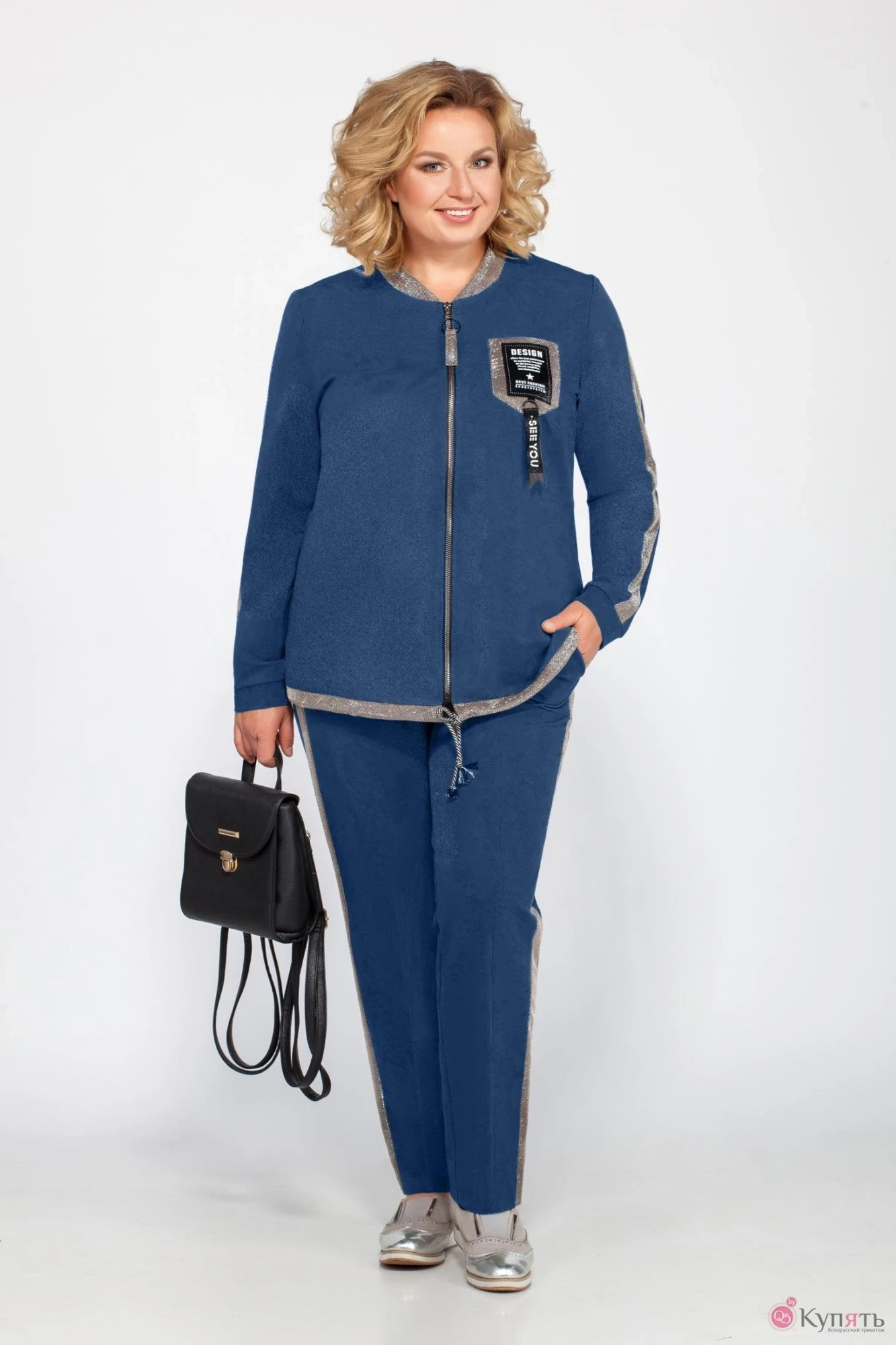 Стильный женский костюм двойка, состоит из блузона и брюк. Костюм выполнен в спортивном стиле.